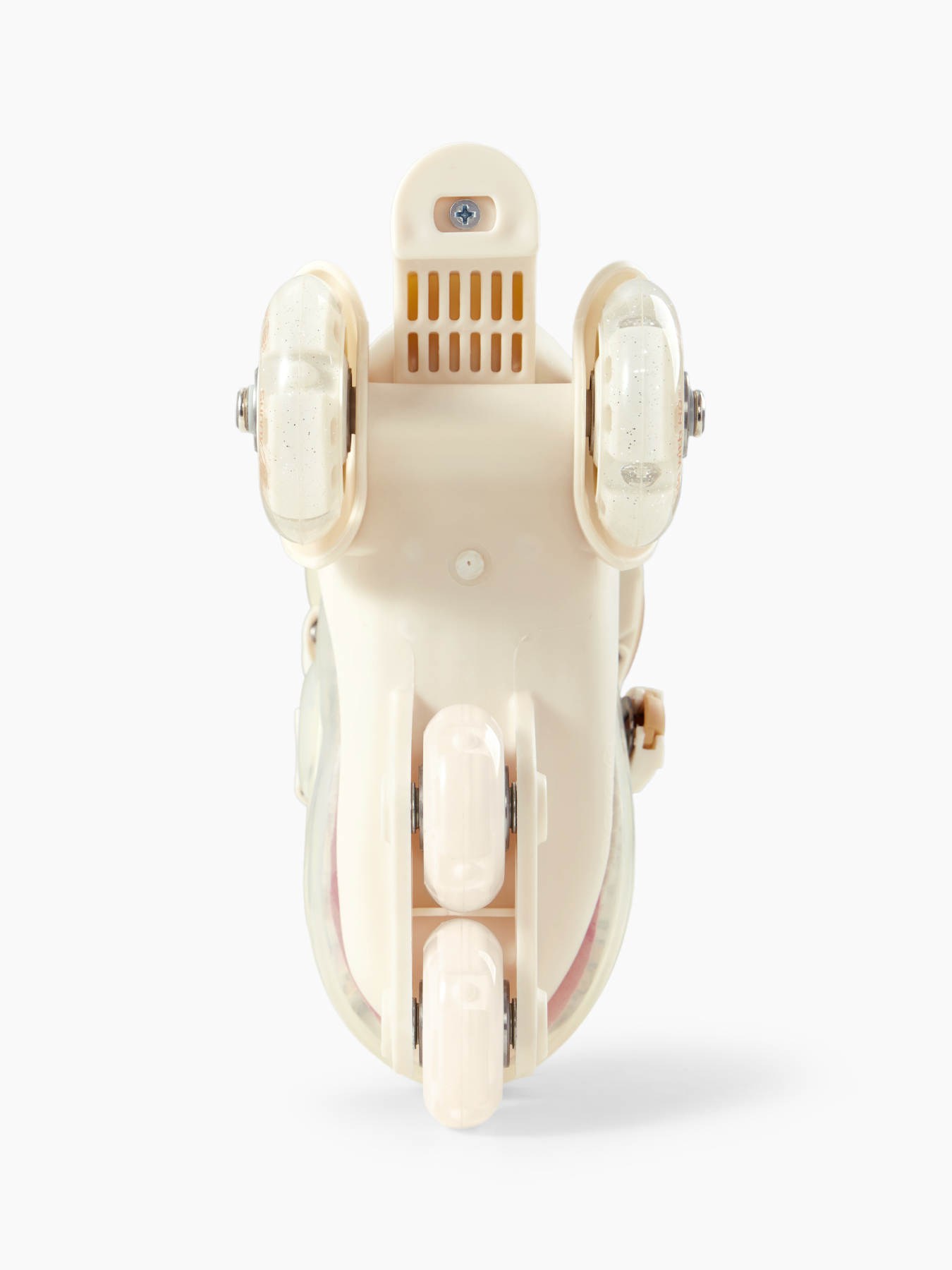 Детские раздвижные роликовые коньки - это идеальный выбор для обучения. Катание развивает координацию, учит держать равновесие, способствует сенсорной интеграции. Коньки оснащены усиленным мысом для защиты ног, а плотная фиксация обеспечивает комфорт и безопасность ребёнка. Система вентиляции стопы поддерживает комфортную температуру во время катания. Модель имеет 4 колеса разного диаметра, что обеспечивает устойчивость и манёвренность. Задние колёса с яркой подсветкой добавляют стильный акцент и делают катание ещё увлекательнее. Подшипники класса ABEC-7 гарантируют плавный ход и высокую скорость.Съемный носочек позволяет легко поддерживать гигиену, а комплект наколенников и налокотников защищает от ударов, делая катание безопасным.
