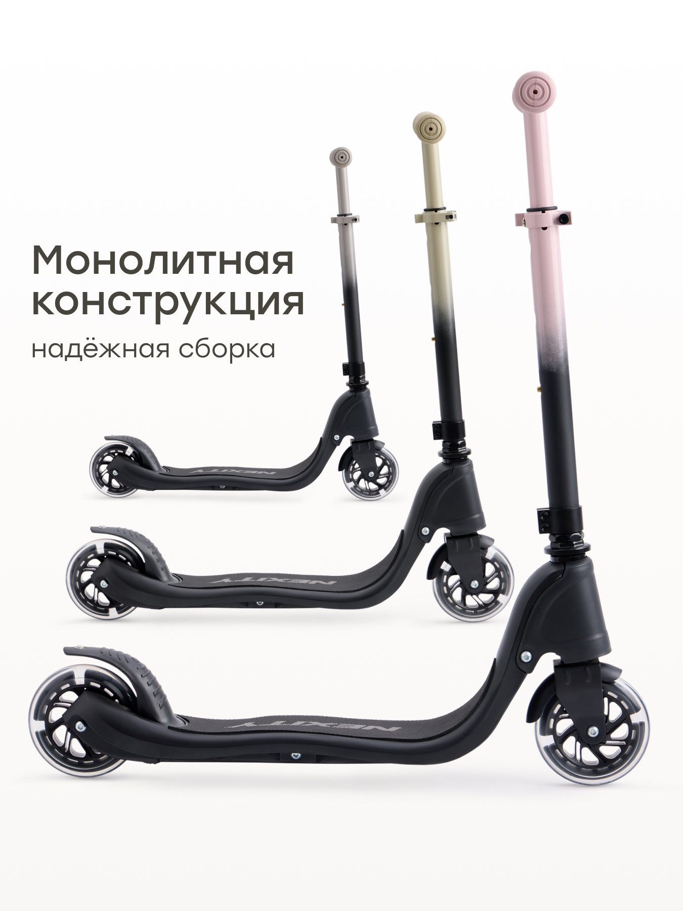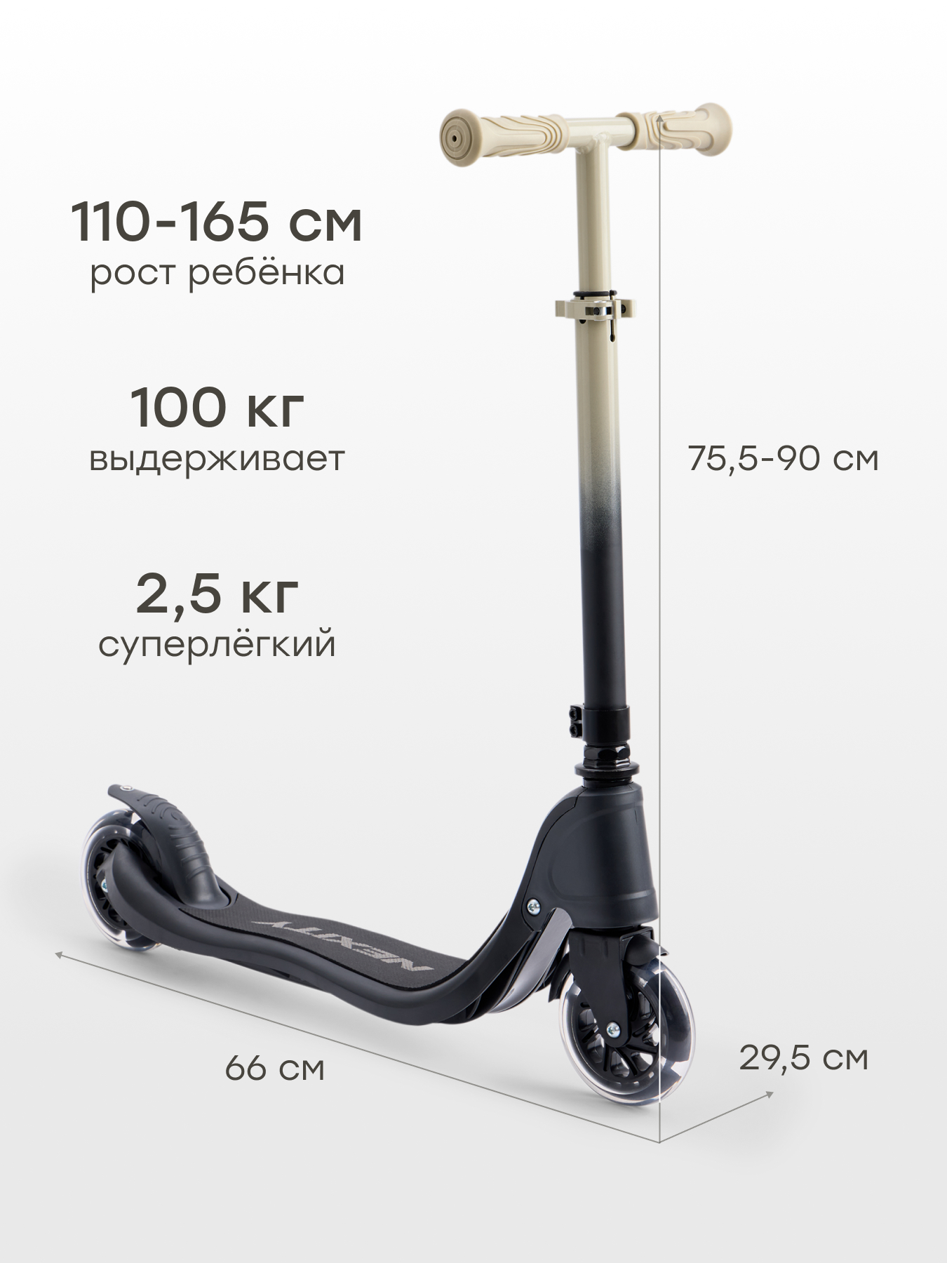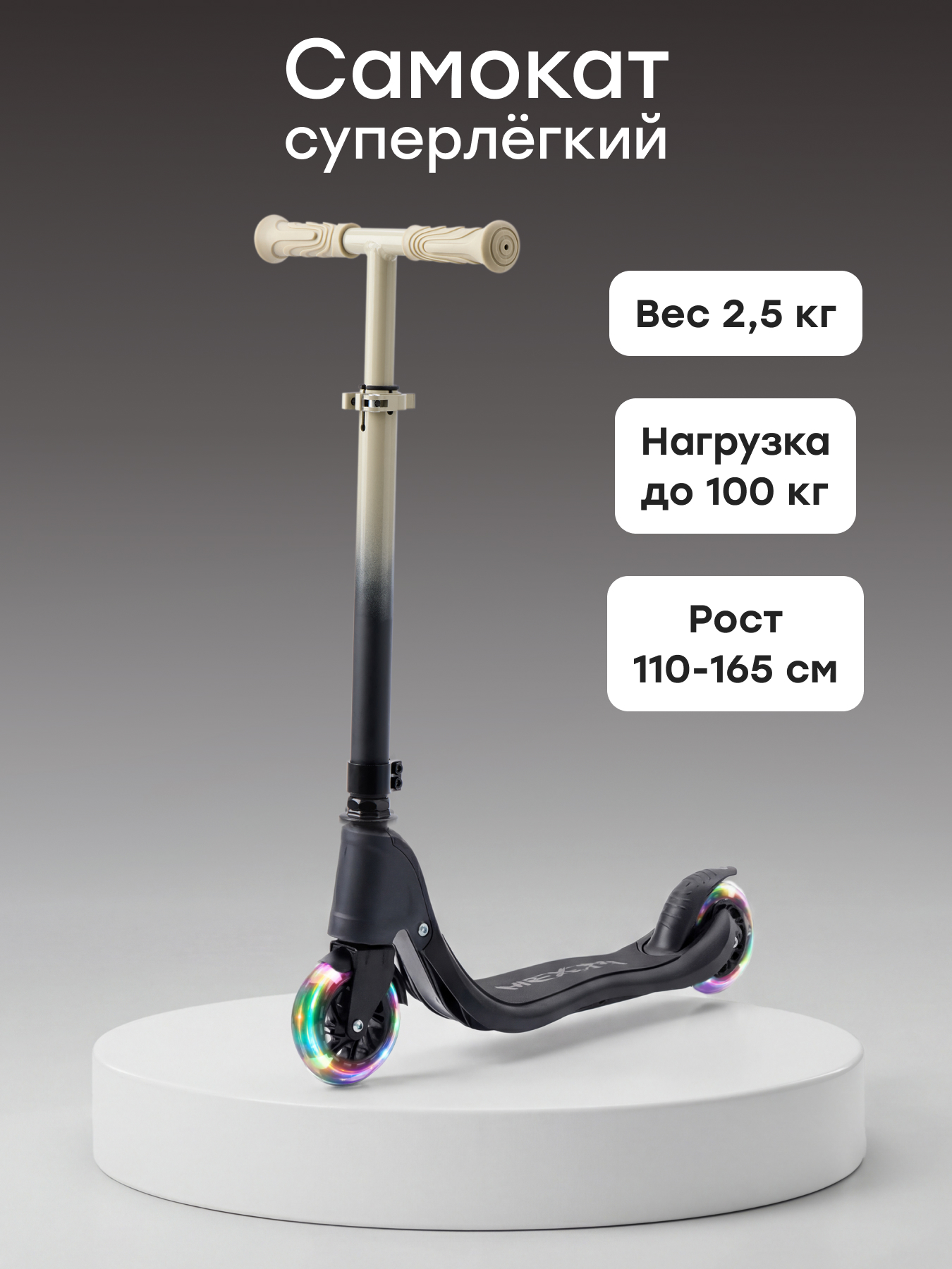• Легкий и стильный дизайн — самокат удобно переносить и использовать каждый день
