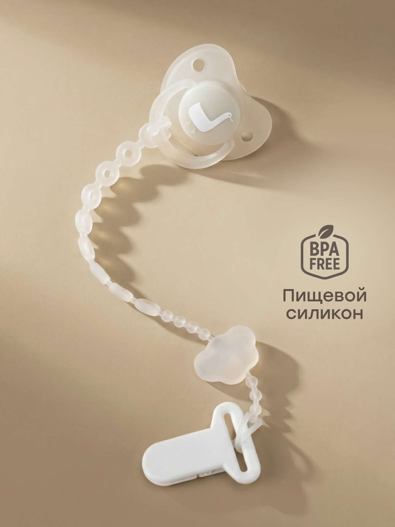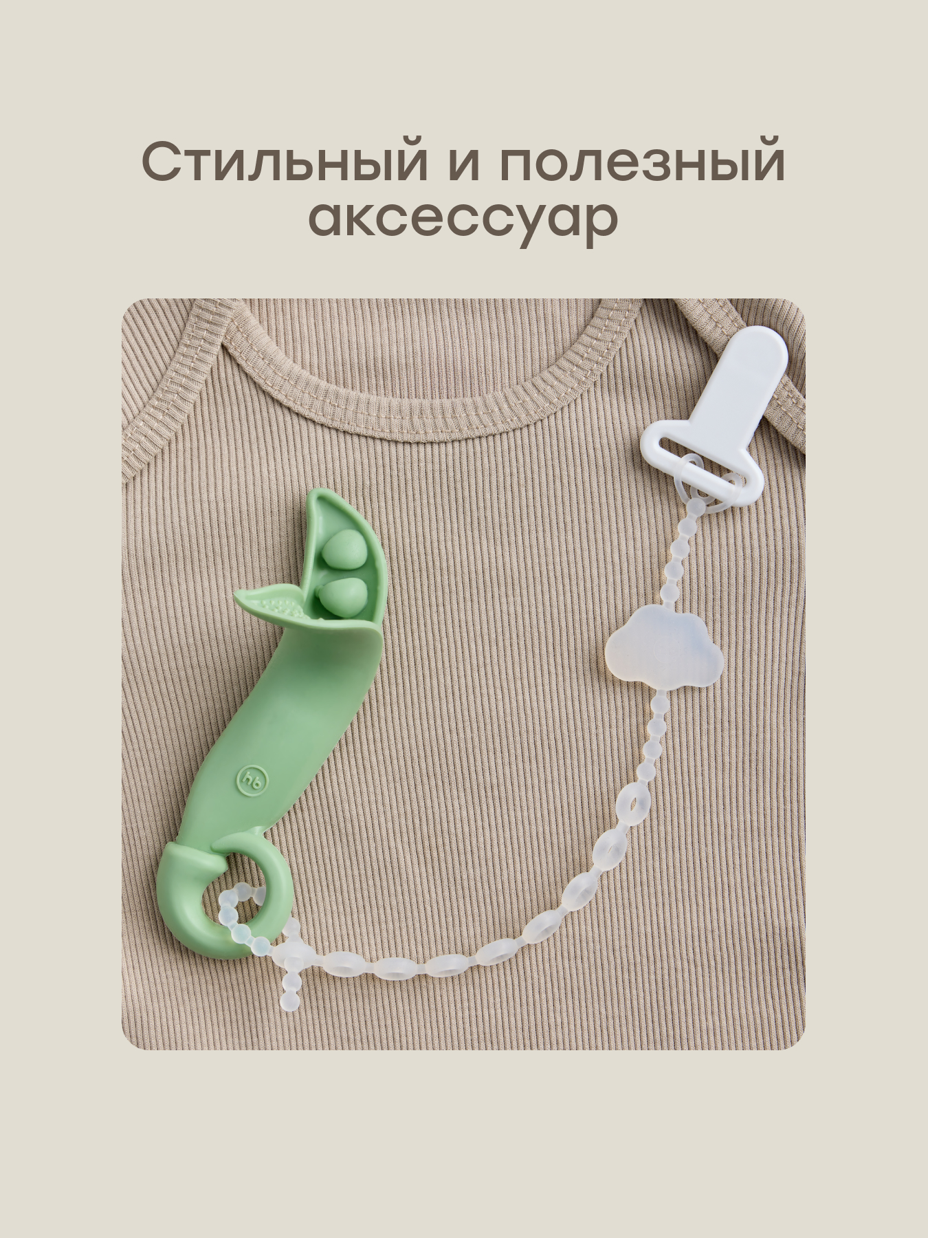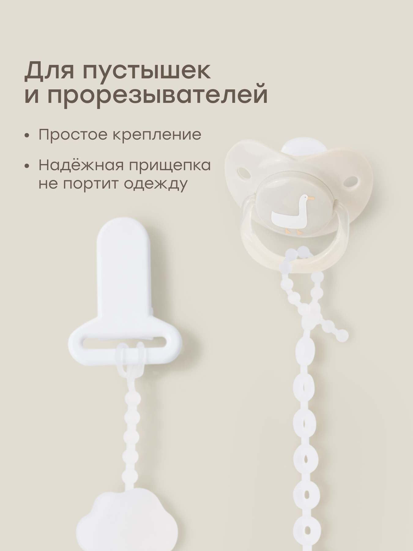 • Удобная клипса — соскодержатель надежно крепится к детской одежде