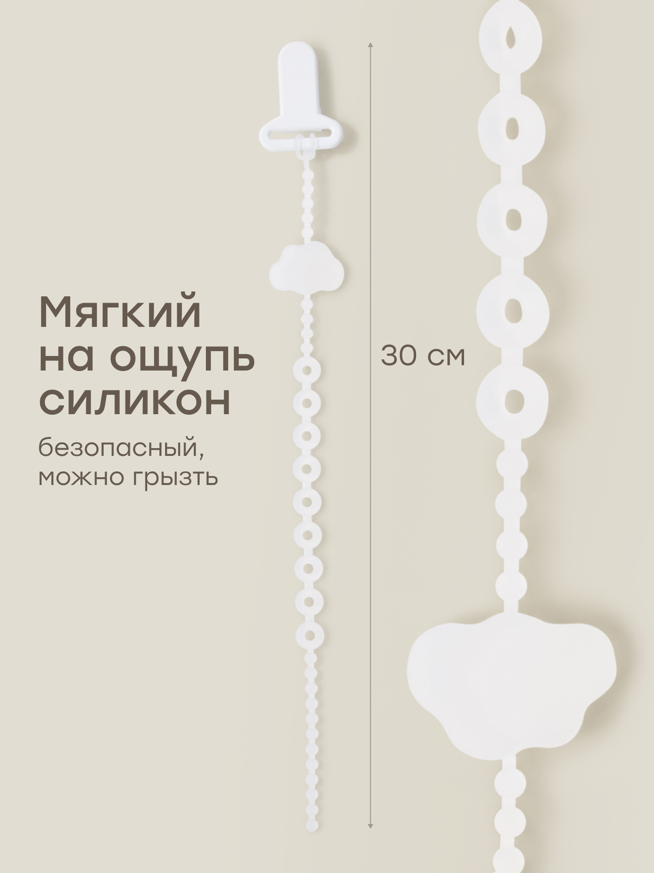 Держатель для пустышки — практичный силиконовый держатель для новорожденных, который не даст потеряться детской пустышке и сохранит ее в чистоте. Изготовлен из прочных материалов, которые не нанесут вред здоровью ребенка. Держатель для соски всегда можно взять с собой и быстро заменить пустышку на прогулке или в поездке.