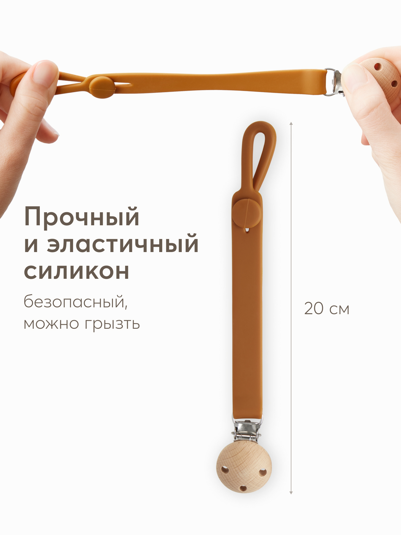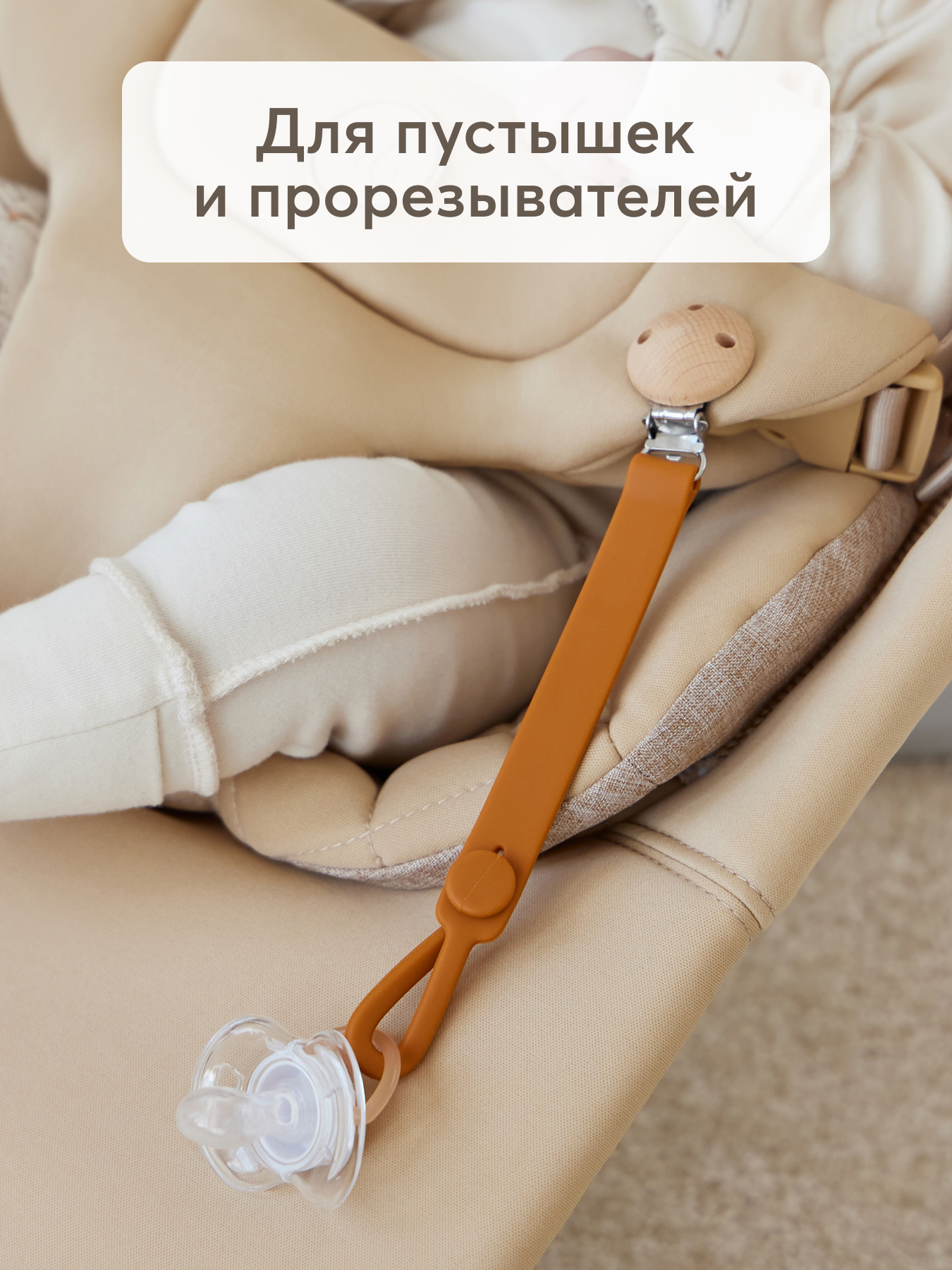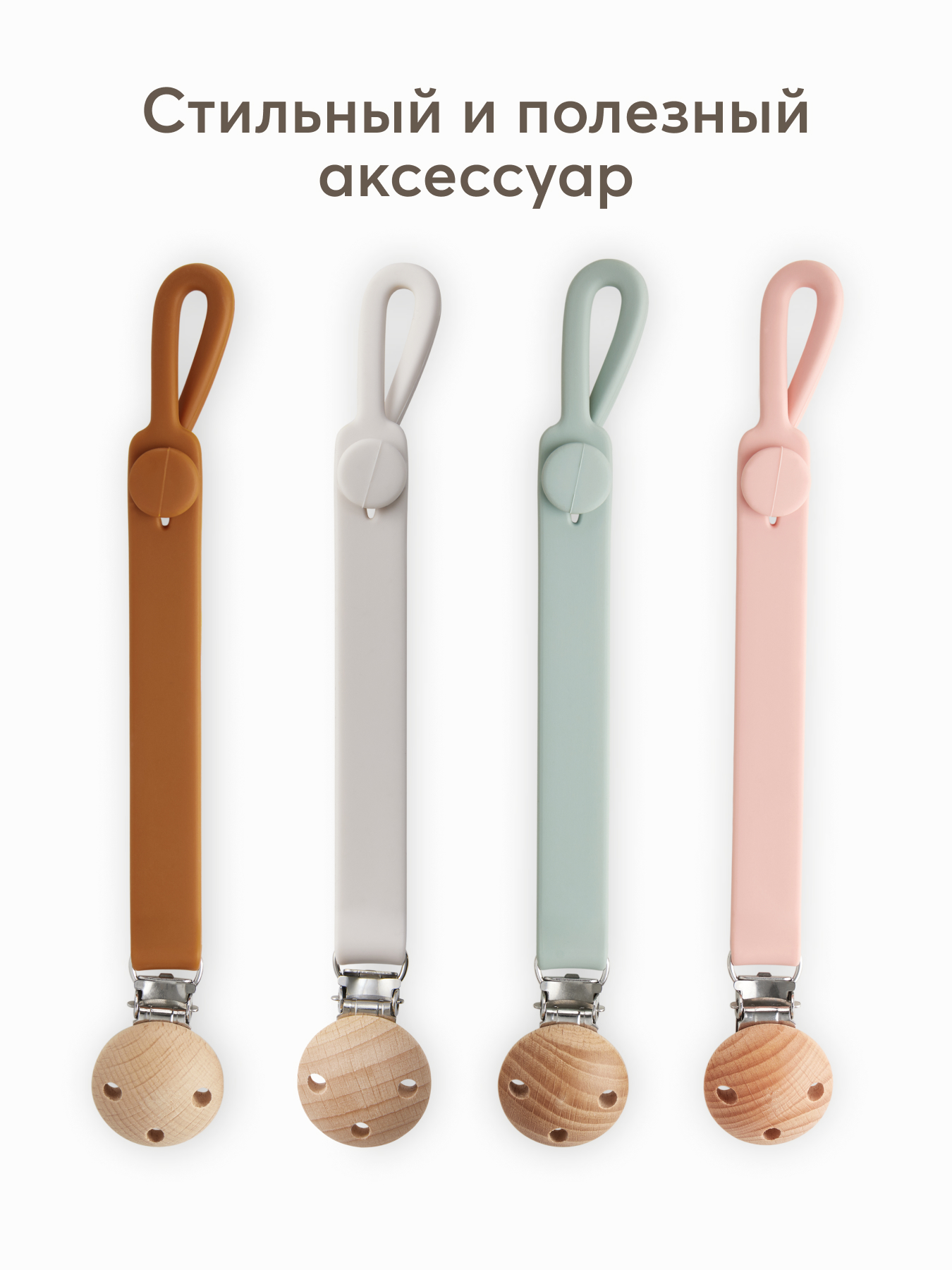 Стильный и прочный держатель для пустышки от hb не порвется и не потеряется. Подходит для всех аксессуаров малыша: как держатель для соски пустышки, прорезывателя, любимой игрушки. Можно использовать от 0 месяцев. К одежде малышей держатель для соски крепится прочной металлической клипсой. Прищепка сверху имеет круглый деревянный наконечник. Дерево защищает маленьких детей, клипса для пустышки не колется и не поранит ребенка. С другой стороны – силиконовая петелька. Такая цепочка для соски пустышки не оторвется, и любимая соска для новорожденных девочек и мальчиков или грызунок не потеряется. Пищевой силикон, из которого изготовлен держатель от хеппи беби, безопасный. Его можно грызть, что малыш с удовольствием будет делать в период прорезывания зубов. Заказывайте держатель от хэппи бэби, который прослужит вам долгое время.