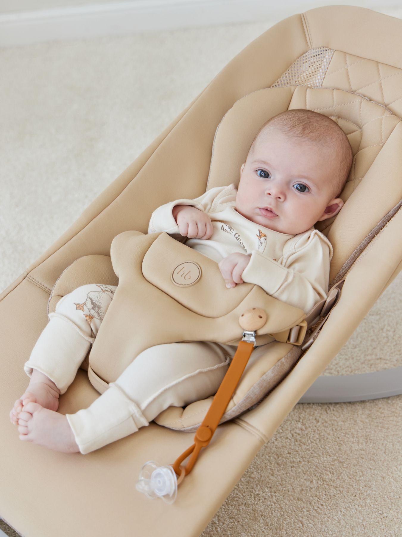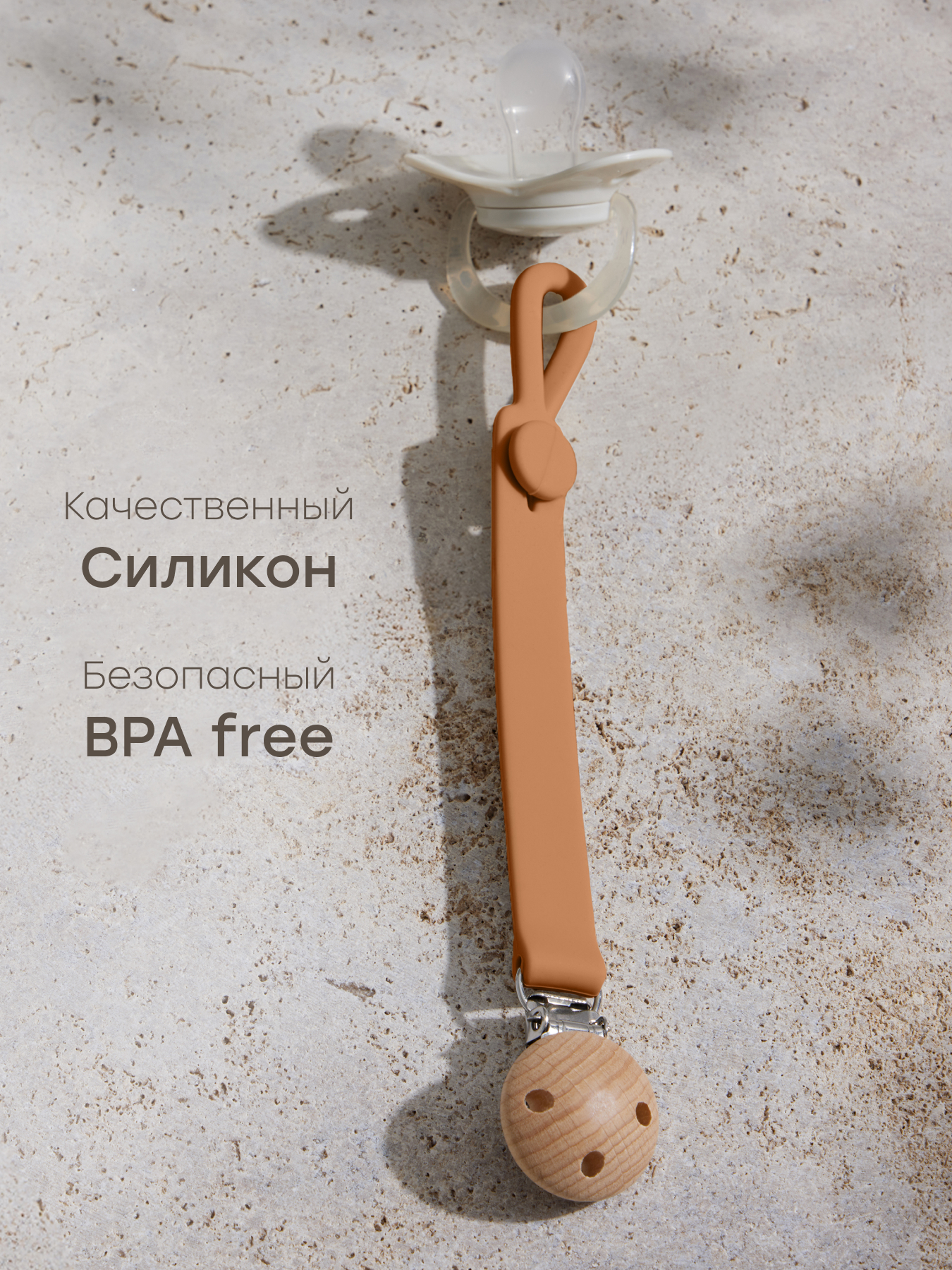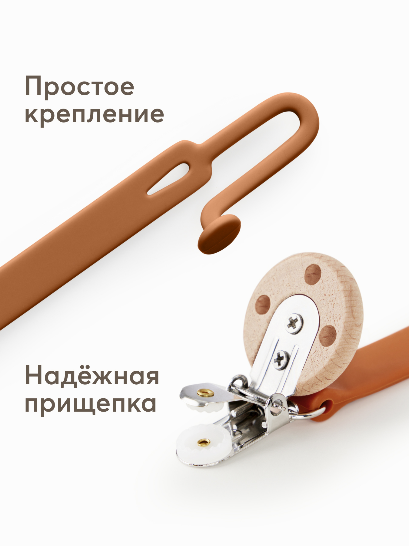 Стильный и прочный держатель для пустышки от hb не порвется и не потеряется. Подходит для всех аксессуаров малыша: как держатель для соски пустышки, прорезывателя, любимой игрушки. Можно использовать от 0 месяцев. К одежде малышей держатель для соски крепится прочной металлической клипсой. Прищепка сверху имеет круглый деревянный наконечник. Дерево защищает маленьких детей, клипса для пустышки не колется и не поранит ребенка. С другой стороны – силиконовая петелька. Такая цепочка для соски пустышки не оторвется, и любимая соска для новорожденных девочек и мальчиков или грызунок не потеряется. Пищевой силикон, из которого изготовлен держатель от хеппи беби, безопасный. Его можно грызть, что малыш с удовольствием будет делать в период прорезывания зубов. Заказывайте держатель от хэппи бэби, который прослужит вам долгое время.