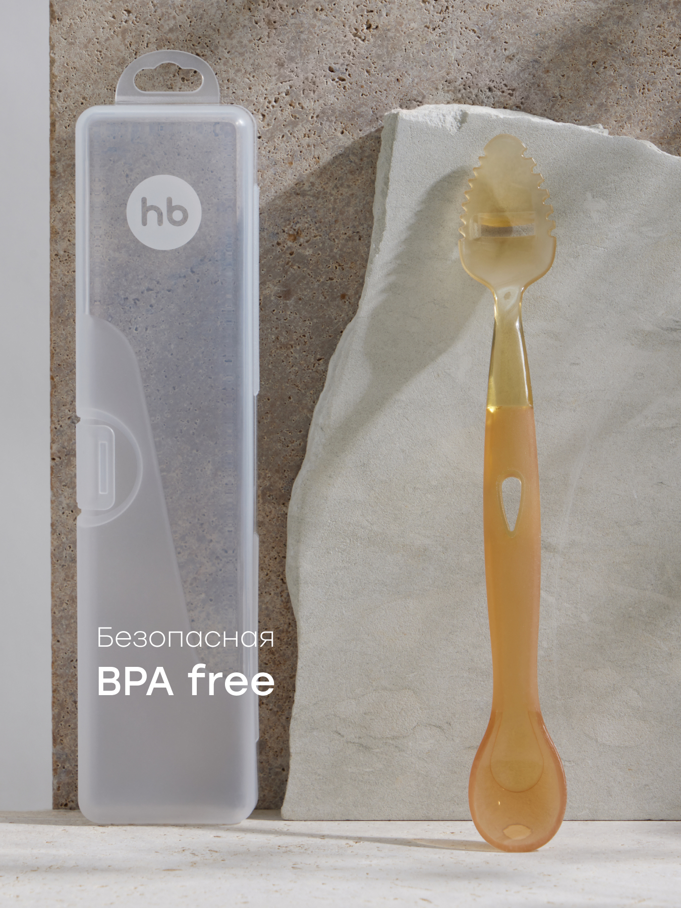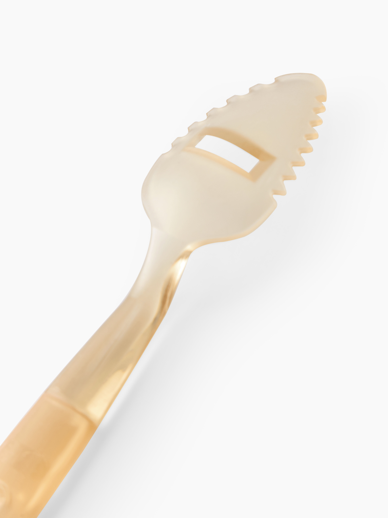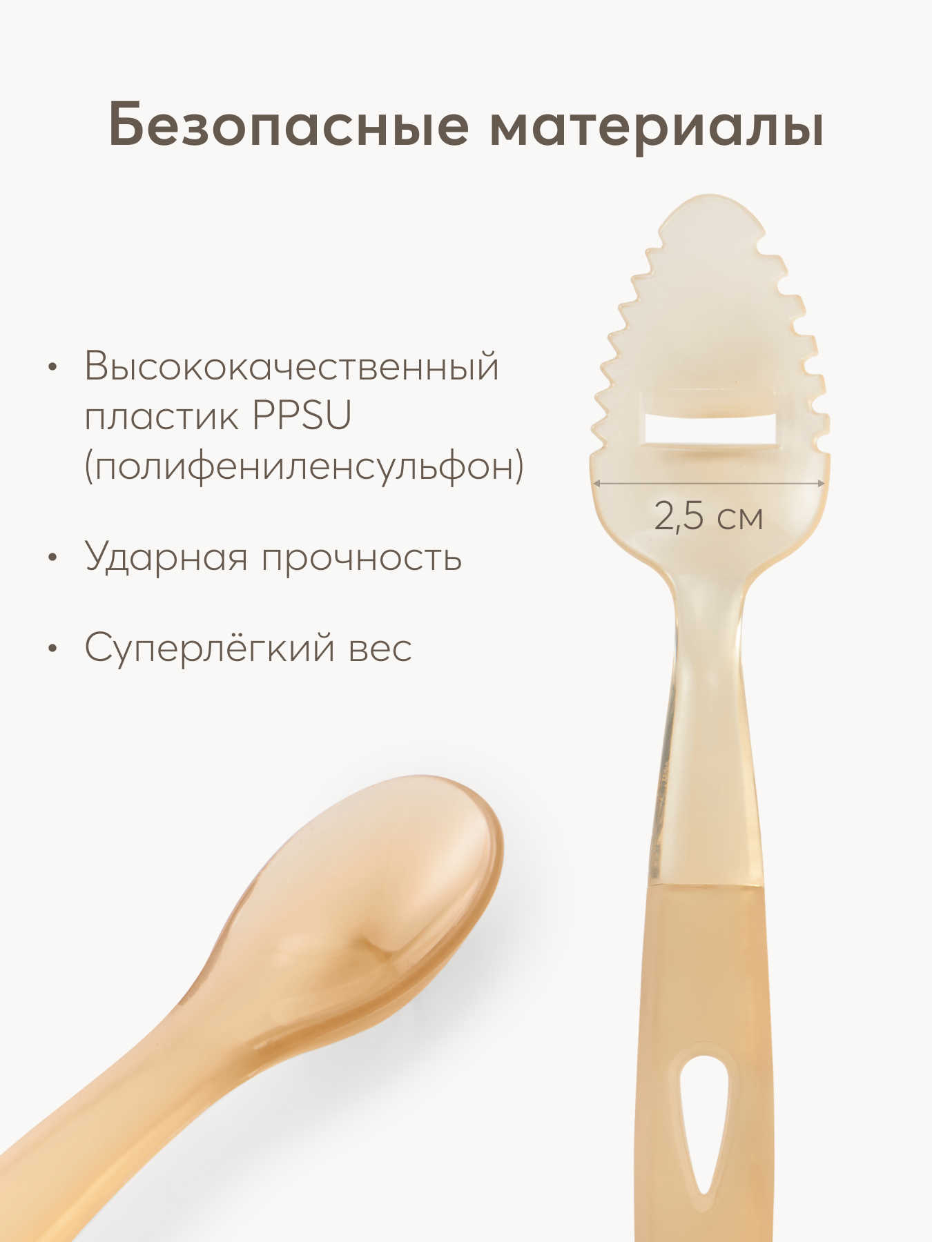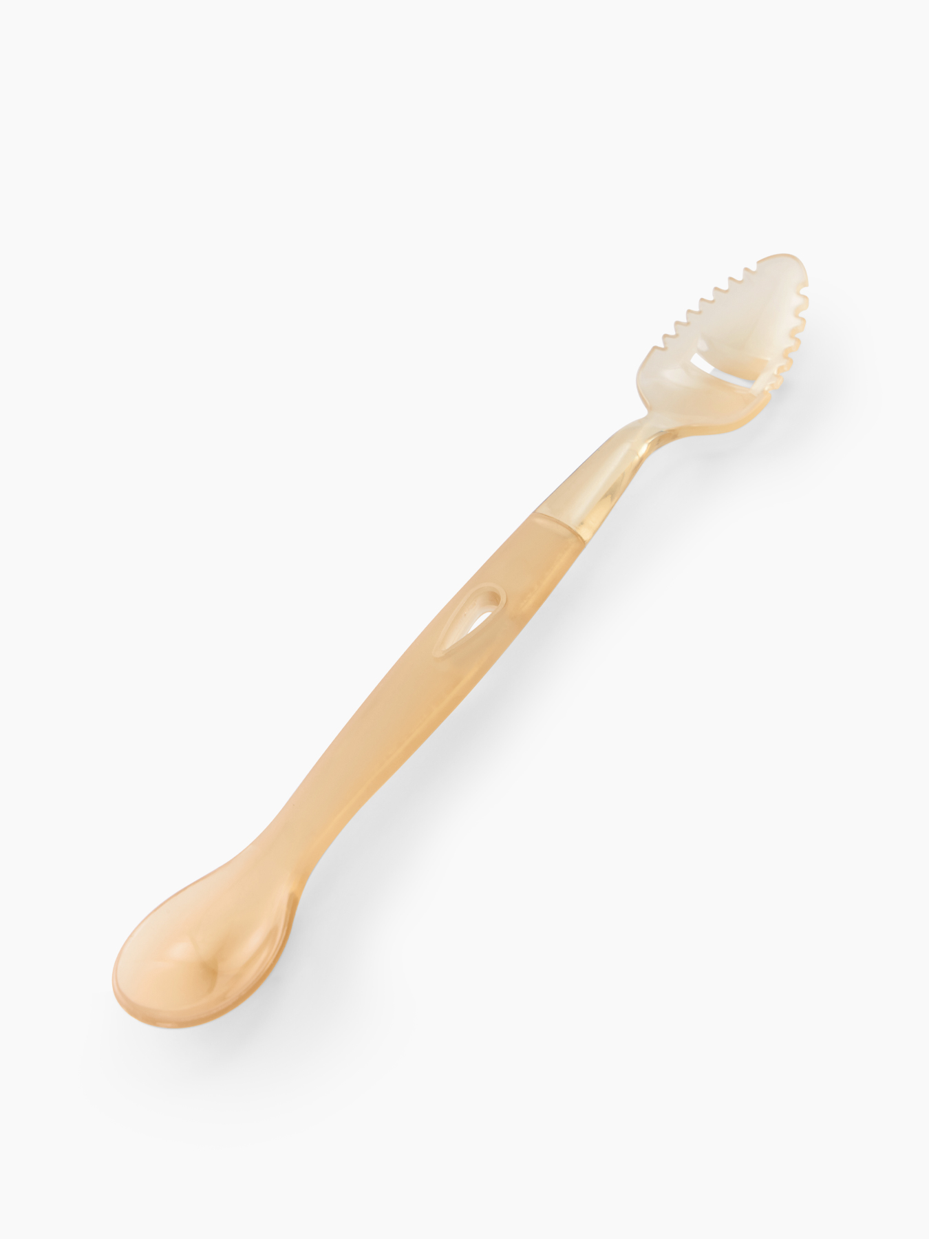 Двусторонняя ложка создана для удобства родителей при введении прикорма. Гладкая часть идеальна для каш и пюре. Имеет удобный размер и подойдет самым маленьким. Благодаря длинной ручке легко доставать питание из высоких баночек. С другой стороны – ложка с зубчиками, которая позволяет отрезать маленькие кусочки свежих фруктов и овощей или размять их в пюре. Такой вариант кормления помогает сохранить максимальное количество витаминов в пище и плавно приучить малыша к кусочкам, а также сохраняет время мамы – после обеда достаточно вымыть один столовый прибор.