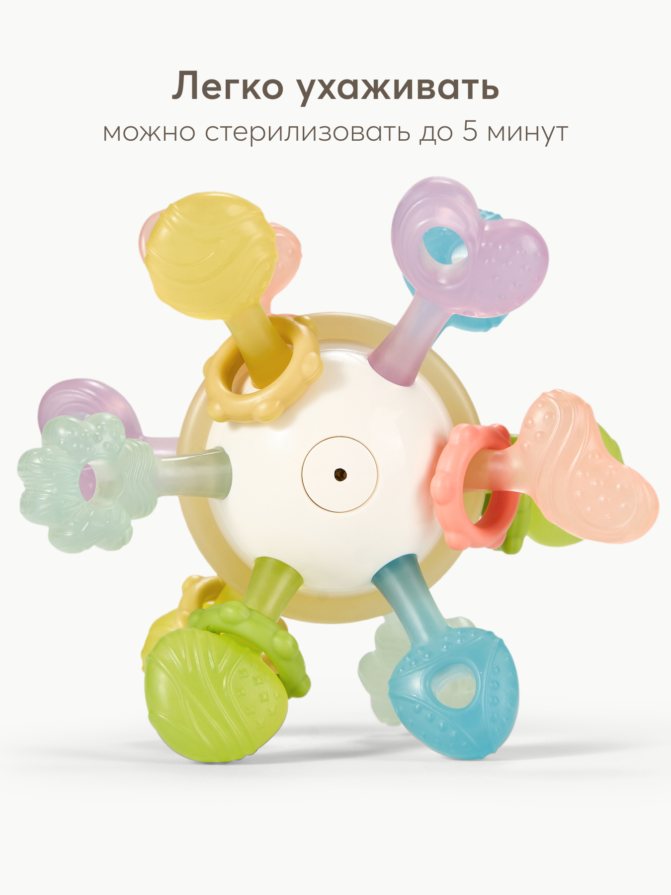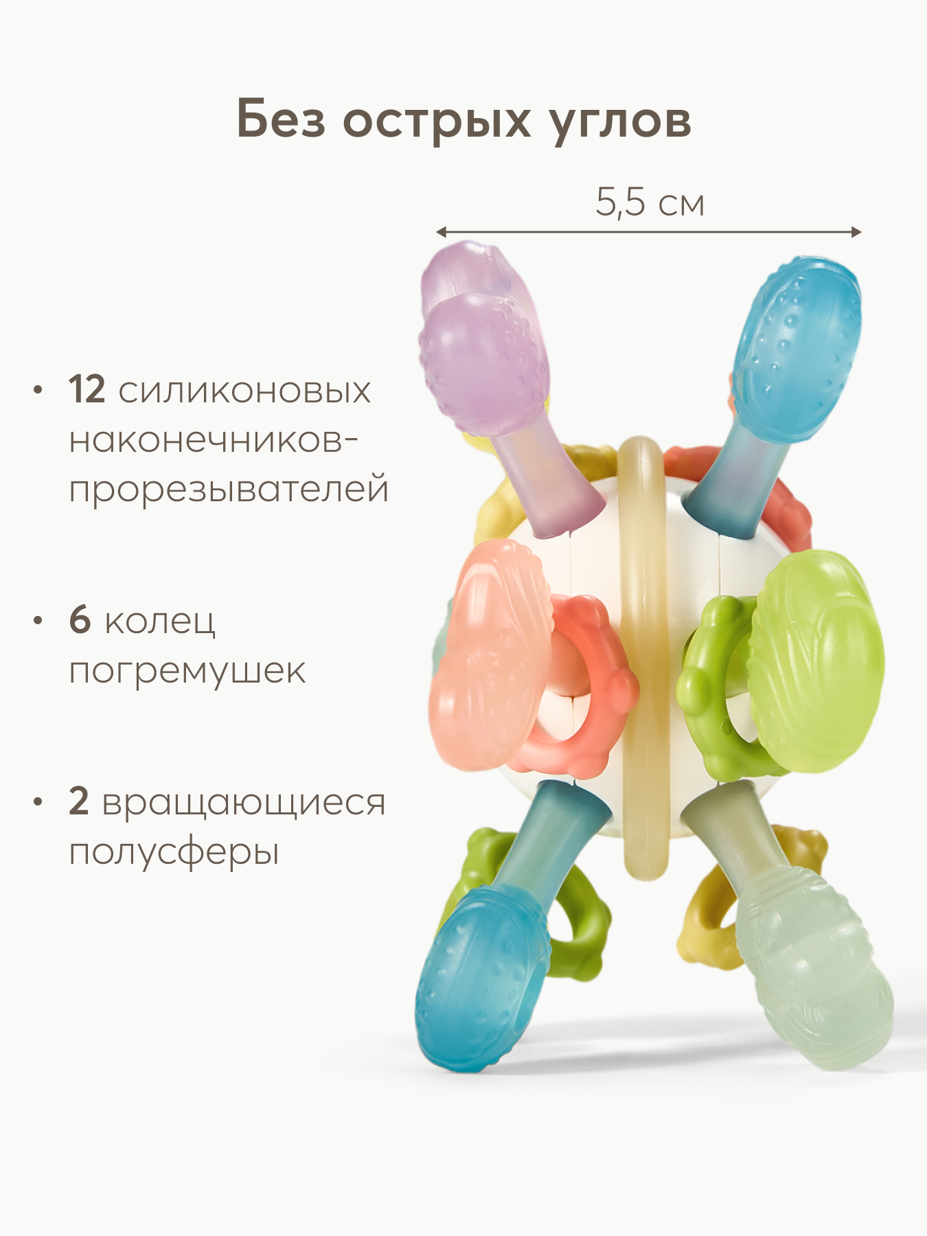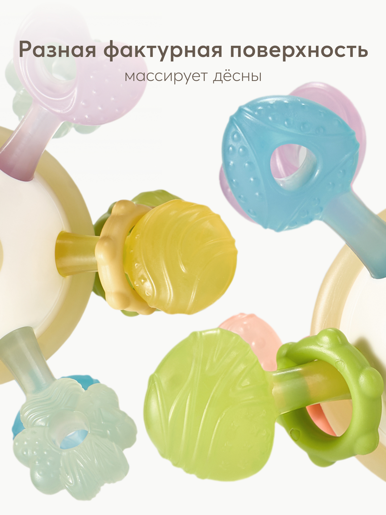 • Разнообразные текстуры и формы идеально подходят для малышей, обеспечивая комфортный массаж десен и облегчая боль