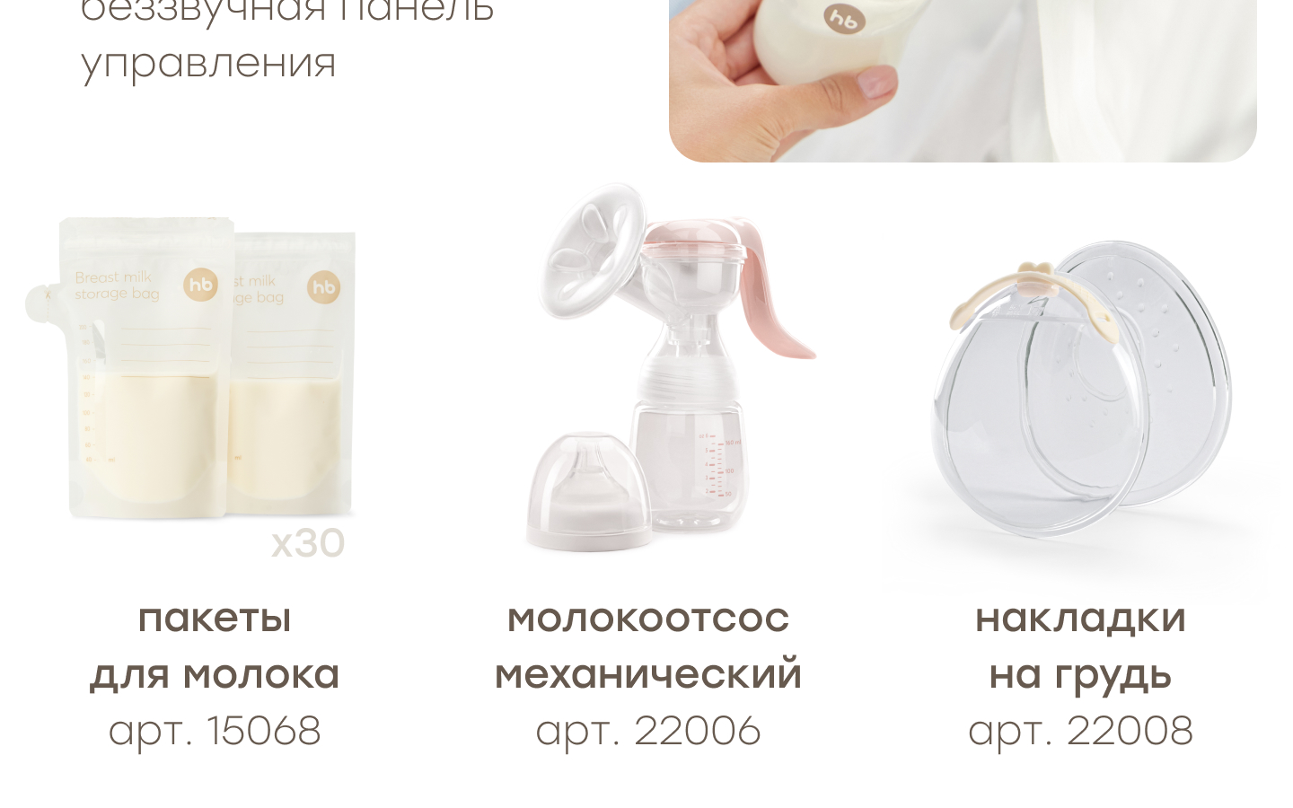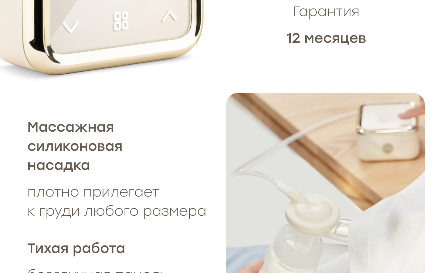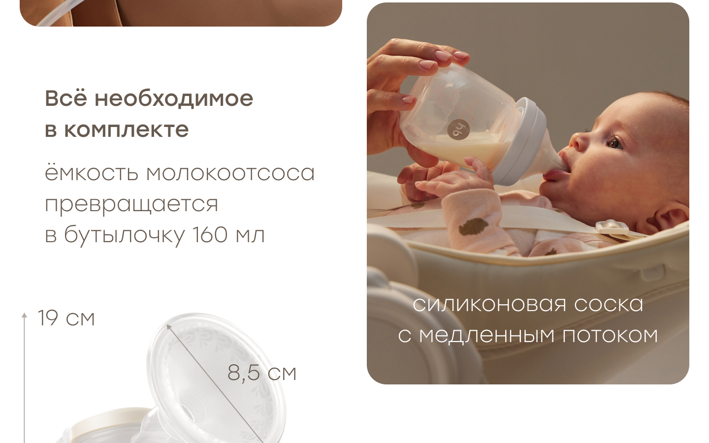 • Регулируемая интенсивность для контролируемого и плавного сцеживания молока с имитацией естественного кормления