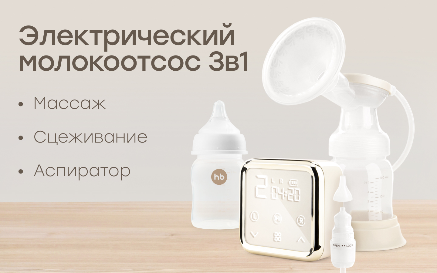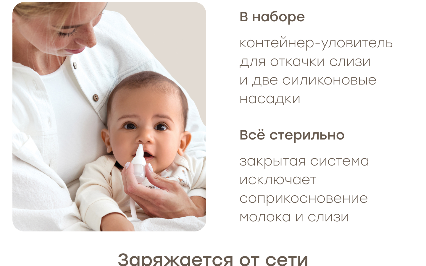 Электрический молокоотсос с назальным аспиратором в комплекте облегчит мамам уход за новорождённым и ребёнком постарше.