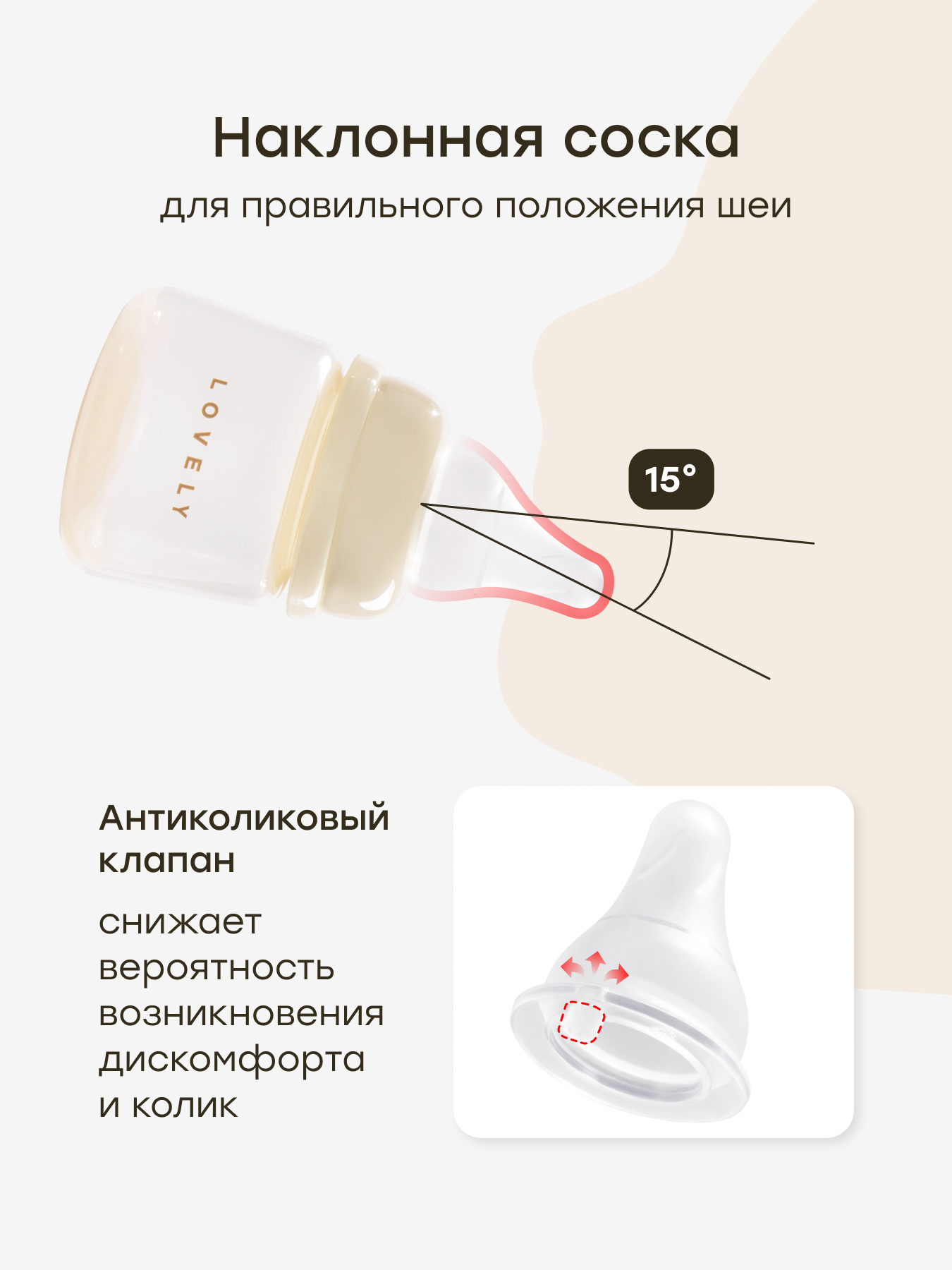 • Сохранение грудного вскармливания - положение наклонной соски при кормлении минимизирует риск отказа от груди