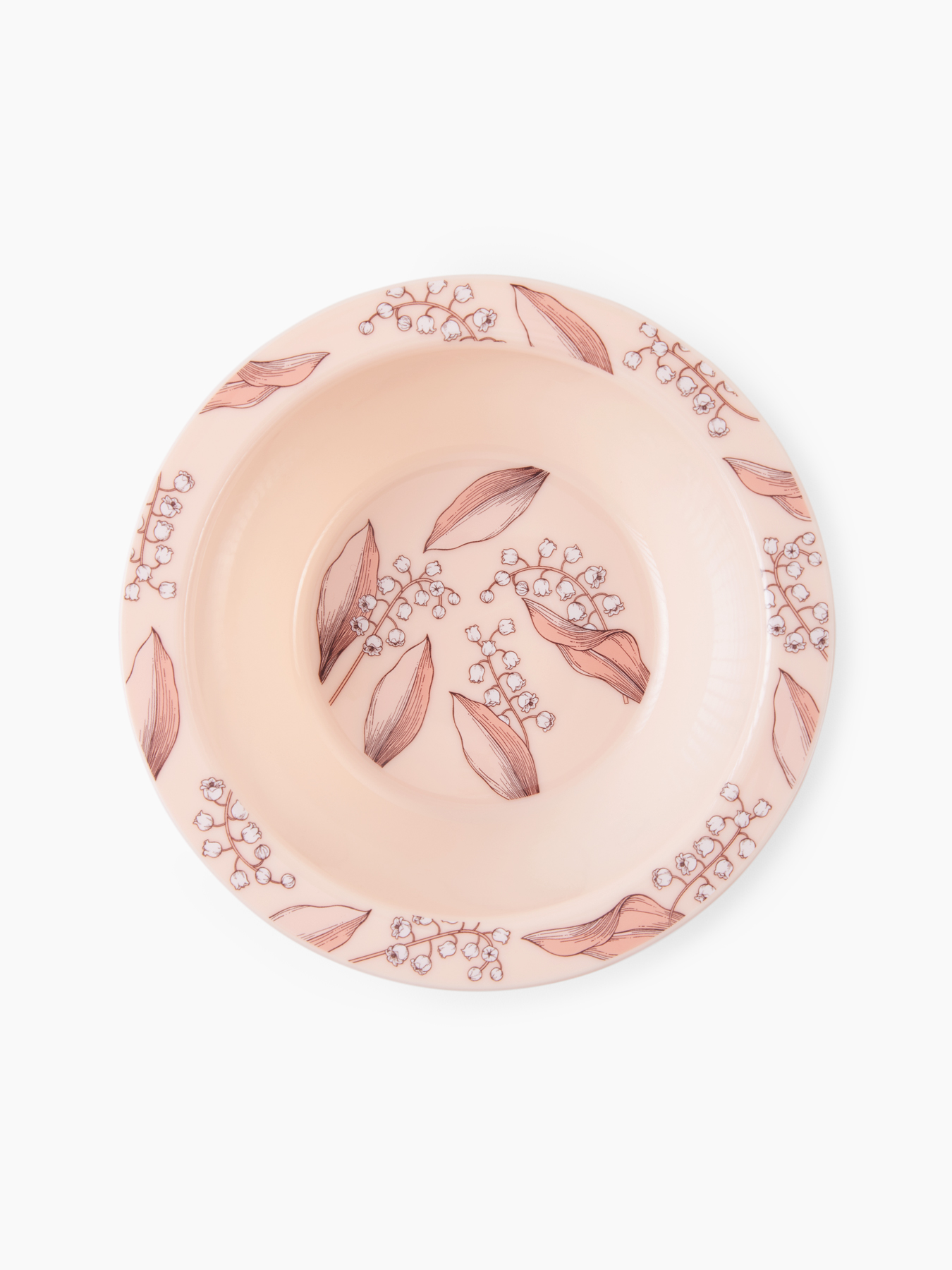 Глубокая тарелочка прекрасно подойдёт для первого прикорма и самостоятельных приёмов пищи. Качественный и прочный материал не позволит тарелочке разбиться при случайном падении, а широкие края делают её более удобной для использования. Забавный рисунок на дне тарелки поможет маме заинтересовать ребёнка во время кормления.
