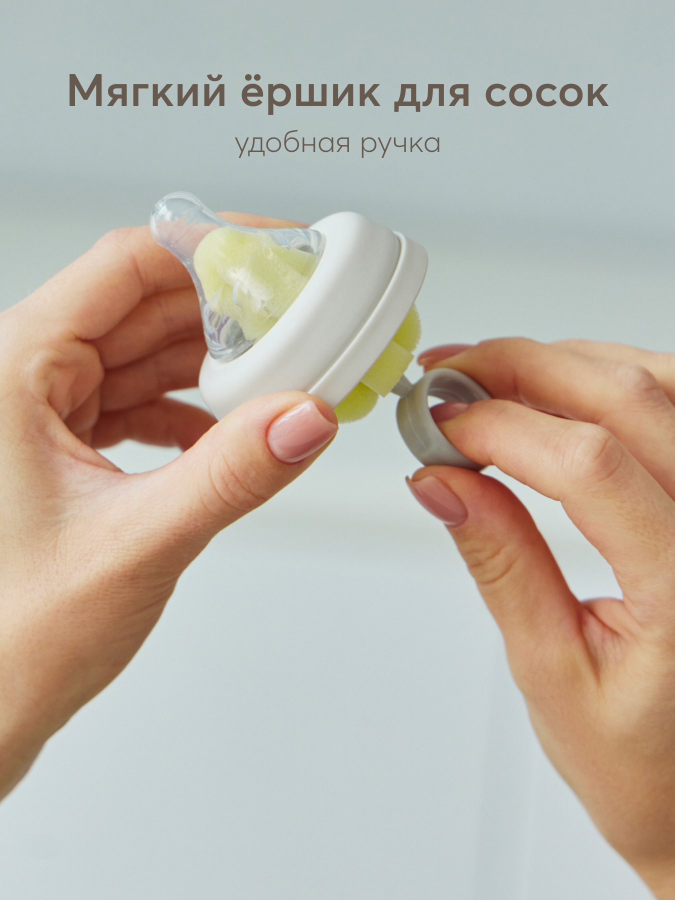 • 2 в 1 – две щетки в комплекте: для бутылочек и сосок