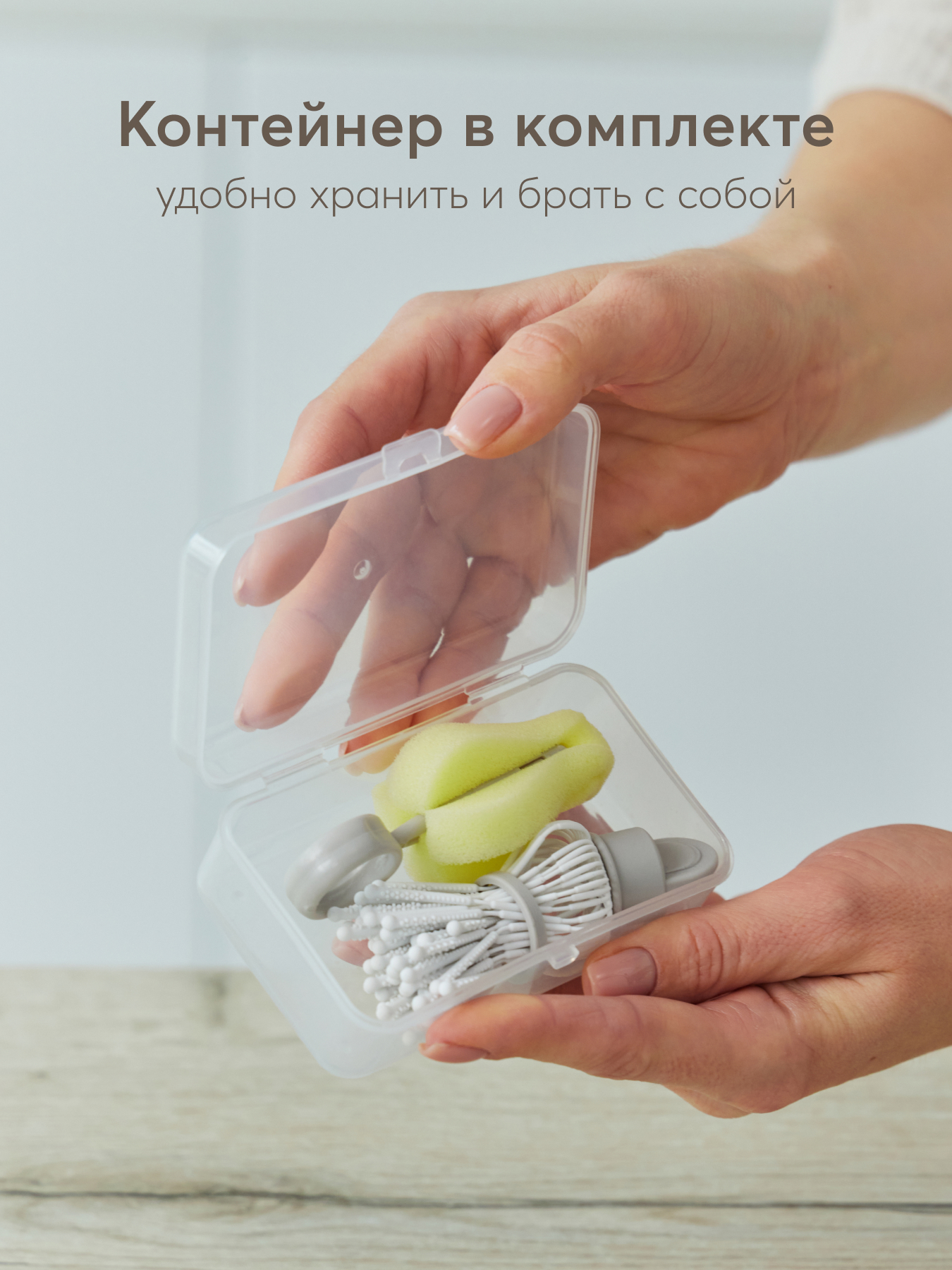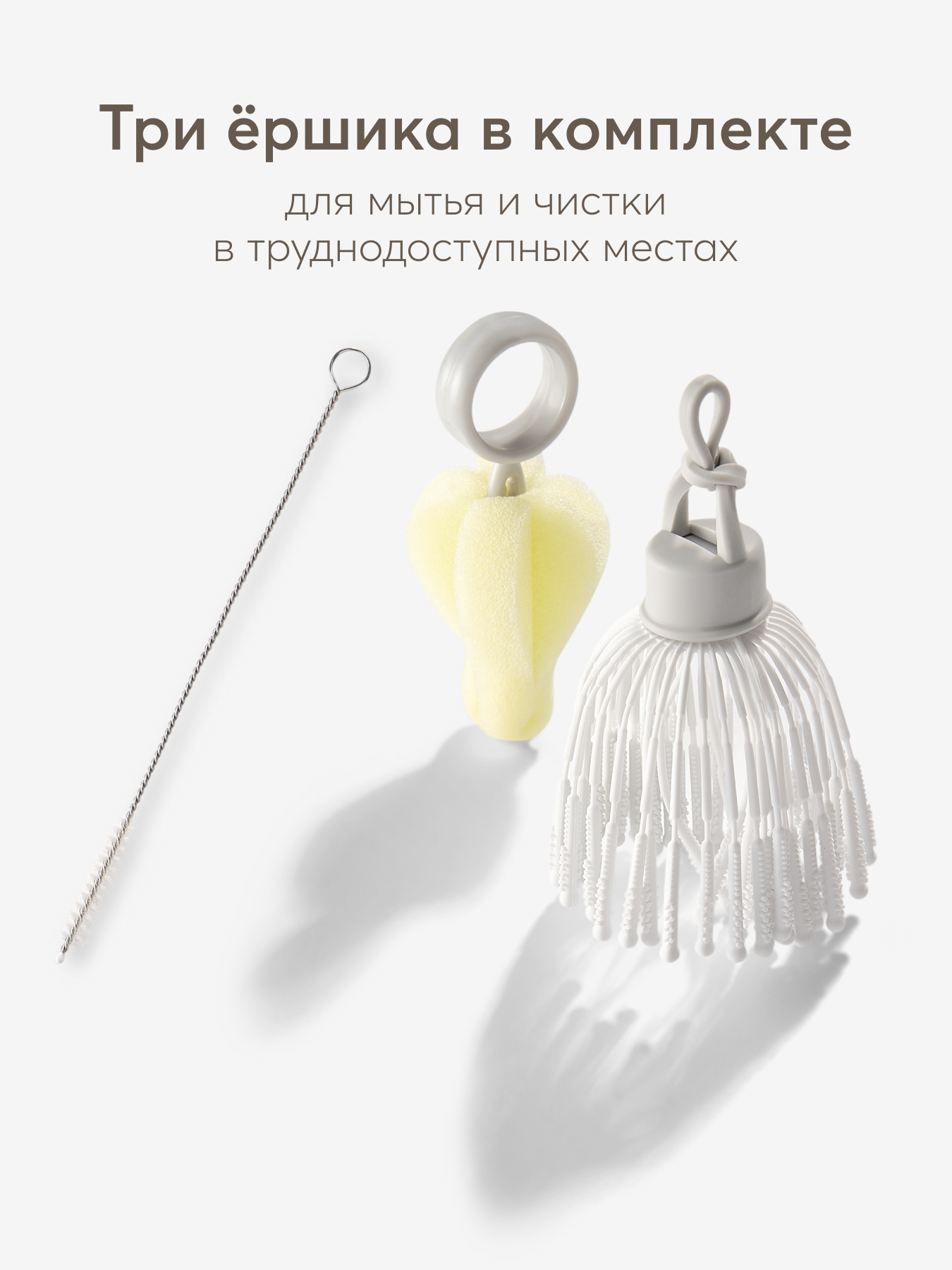 • Мягкие силиконовые щетинки не допускают царапин на внутренних стенках бутылочки