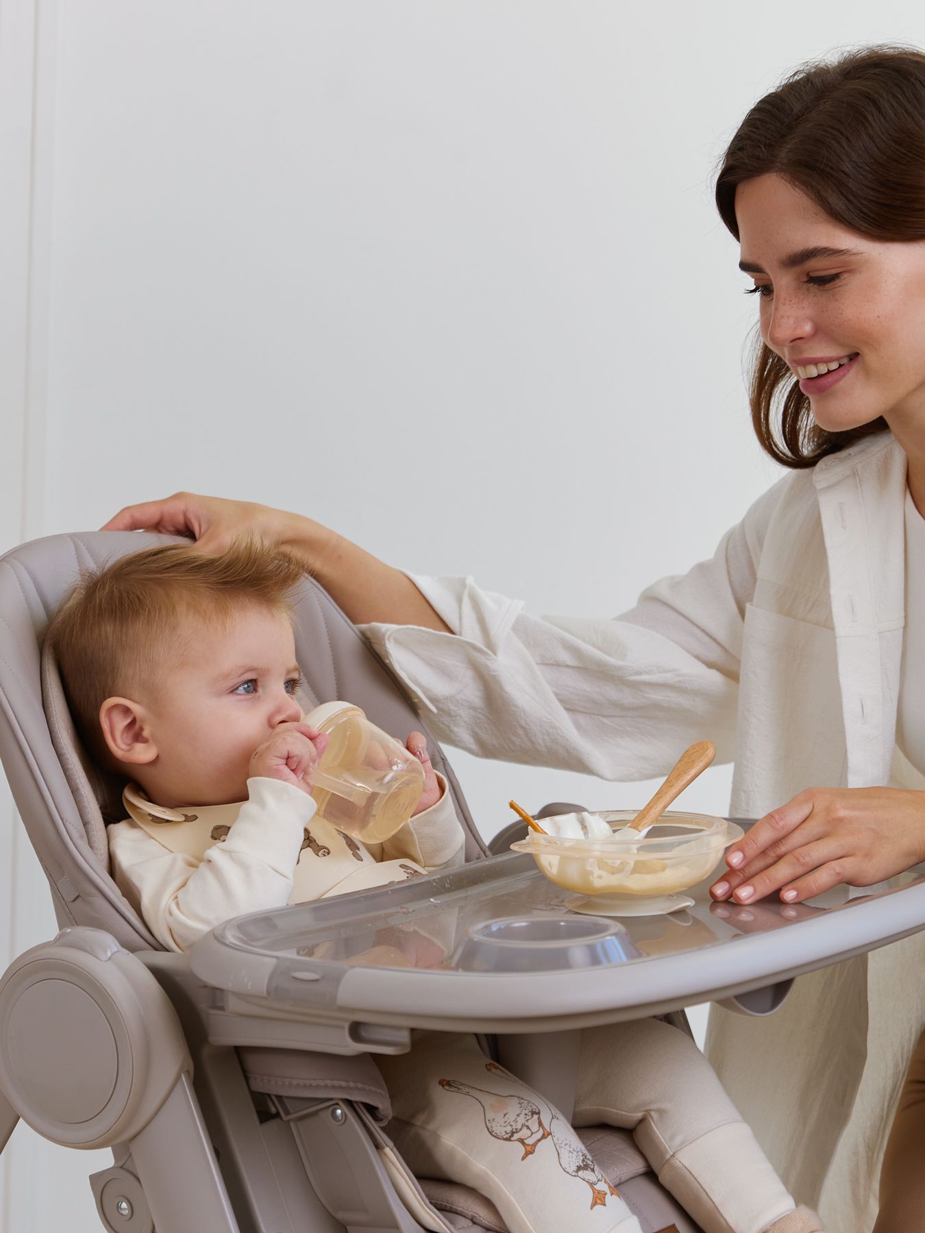 Поильник с ручками тренирует навыки самостоятельного питья. Крышка фиксируется при помощи резьбы, что предотвращает случайное проливание. Поильник поможет ребёнку перейти от грудного вскармливания или бутылочки к обычной кружке. DRINK UP отлично подойдёт малышу, когда у него уже достаточно развита моторика, чтобы держать чашку. Поильник учит малыша координировать движения рук и подносить кружку ко рту.