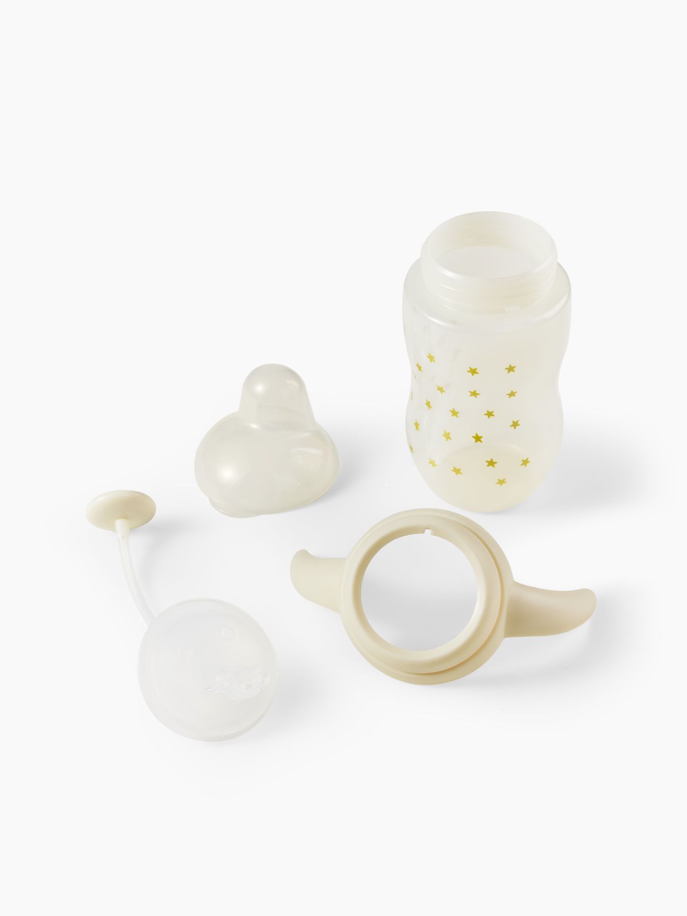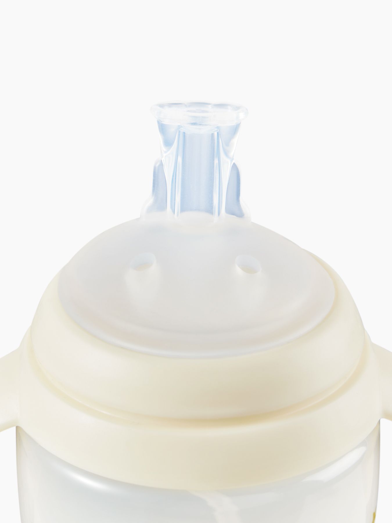 Эта бутылочка объемом 360 мл идеально подходит для активных детей. Имеет систему подачи жидкости с гибкой трубочкой, позволяющую пить под любым углом. Две боковые ручки обеспечивают легкий захват маленькими ручками, способствуя развитию моторных навыков. Широкое горло упрощает наполнение и очистку, а герметичная крышка надежно защищает от проливов, идеально подходя для поездок и прогулок.