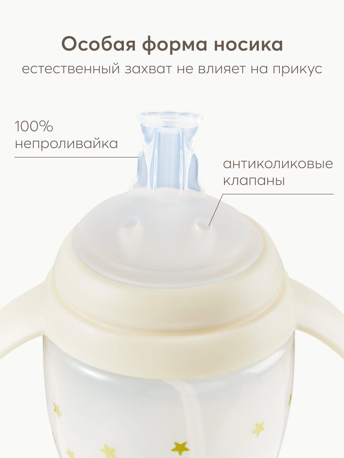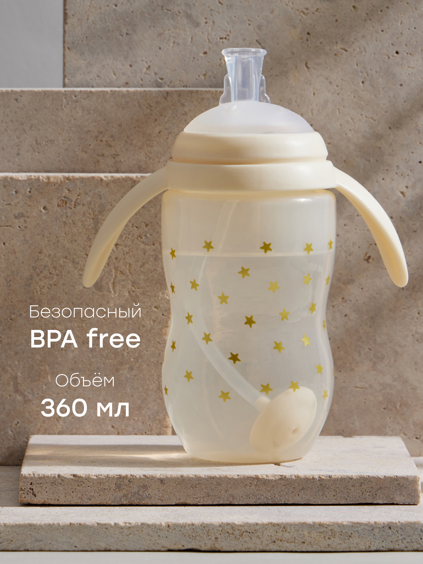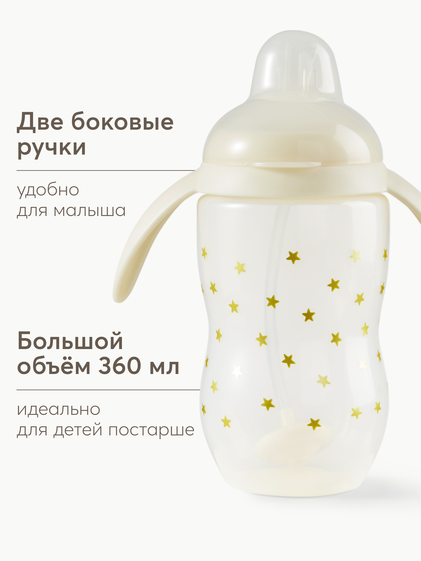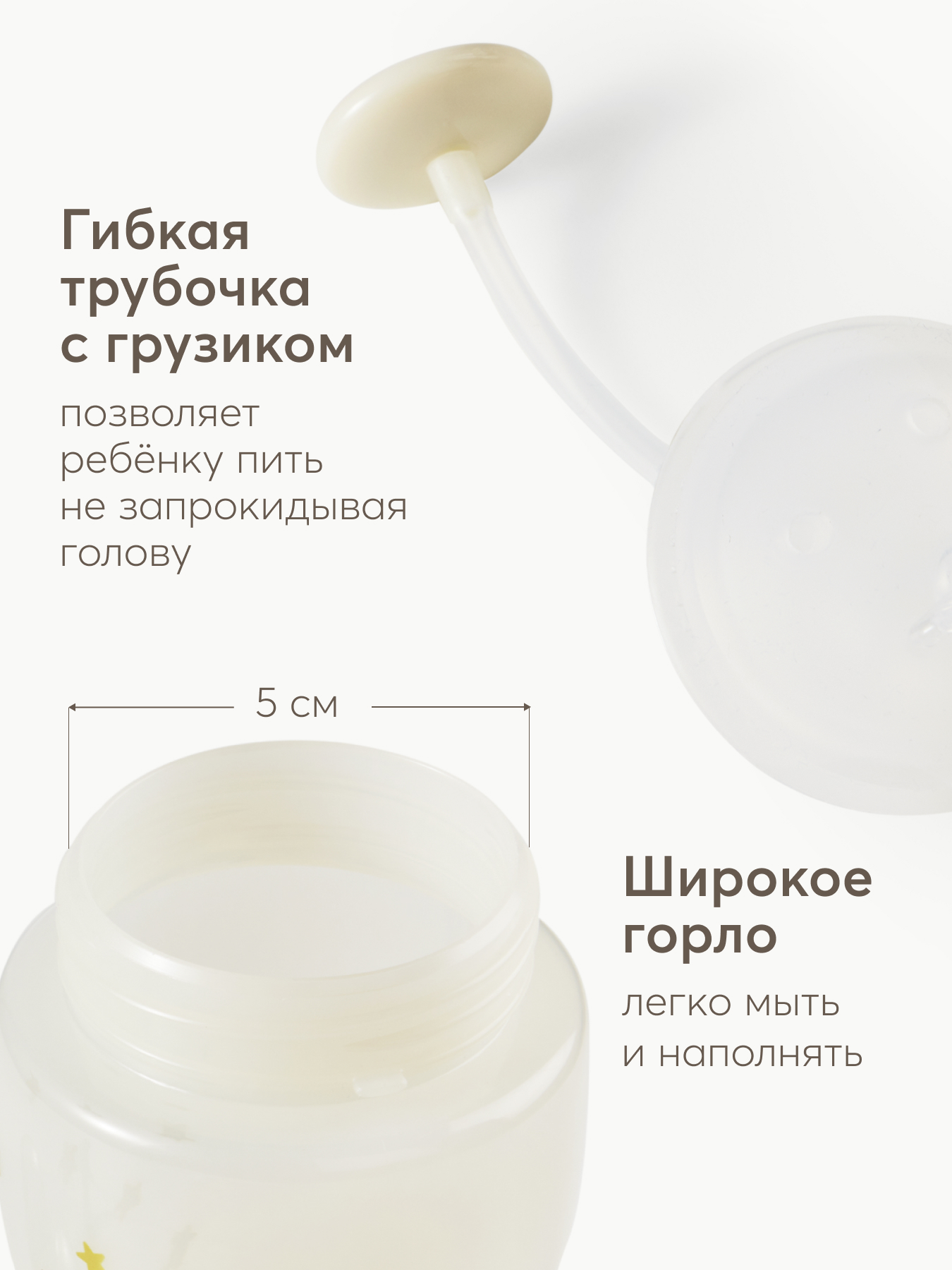 Эта бутылочка объемом 360 мл идеально подходит для активных детей. Имеет систему подачи жидкости с гибкой трубочкой, позволяющую пить под любым углом. Две боковые ручки обеспечивают легкий захват маленькими ручками, способствуя развитию моторных навыков. Широкое горло упрощает наполнение и очистку, а герметичная крышка надежно защищает от проливов, идеально подходя для поездок и прогулок.