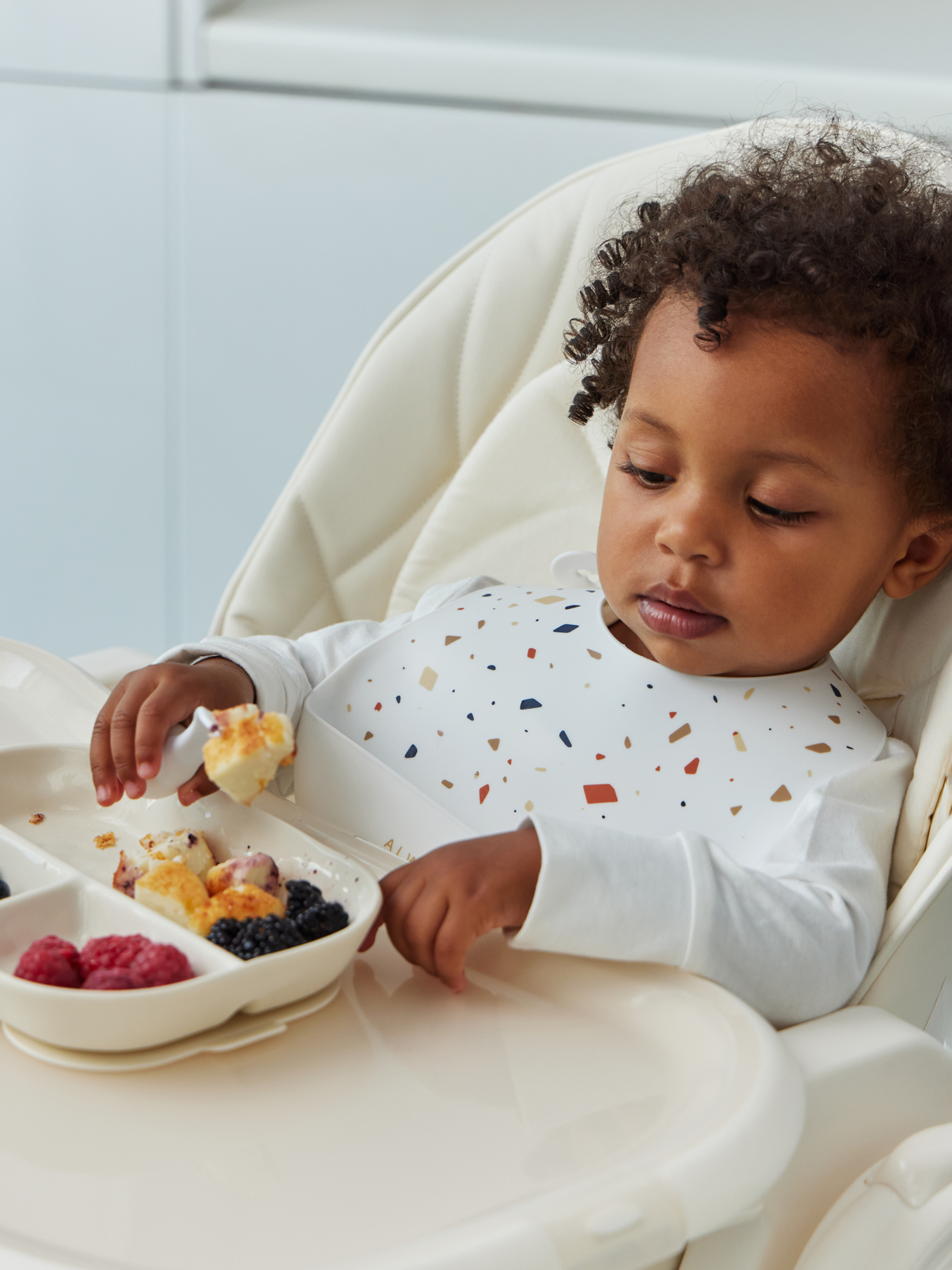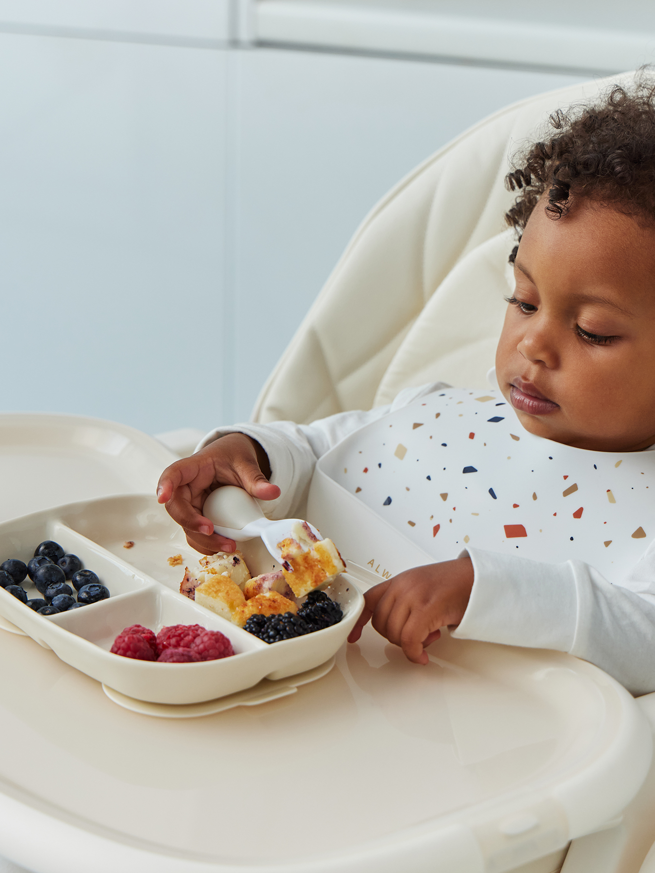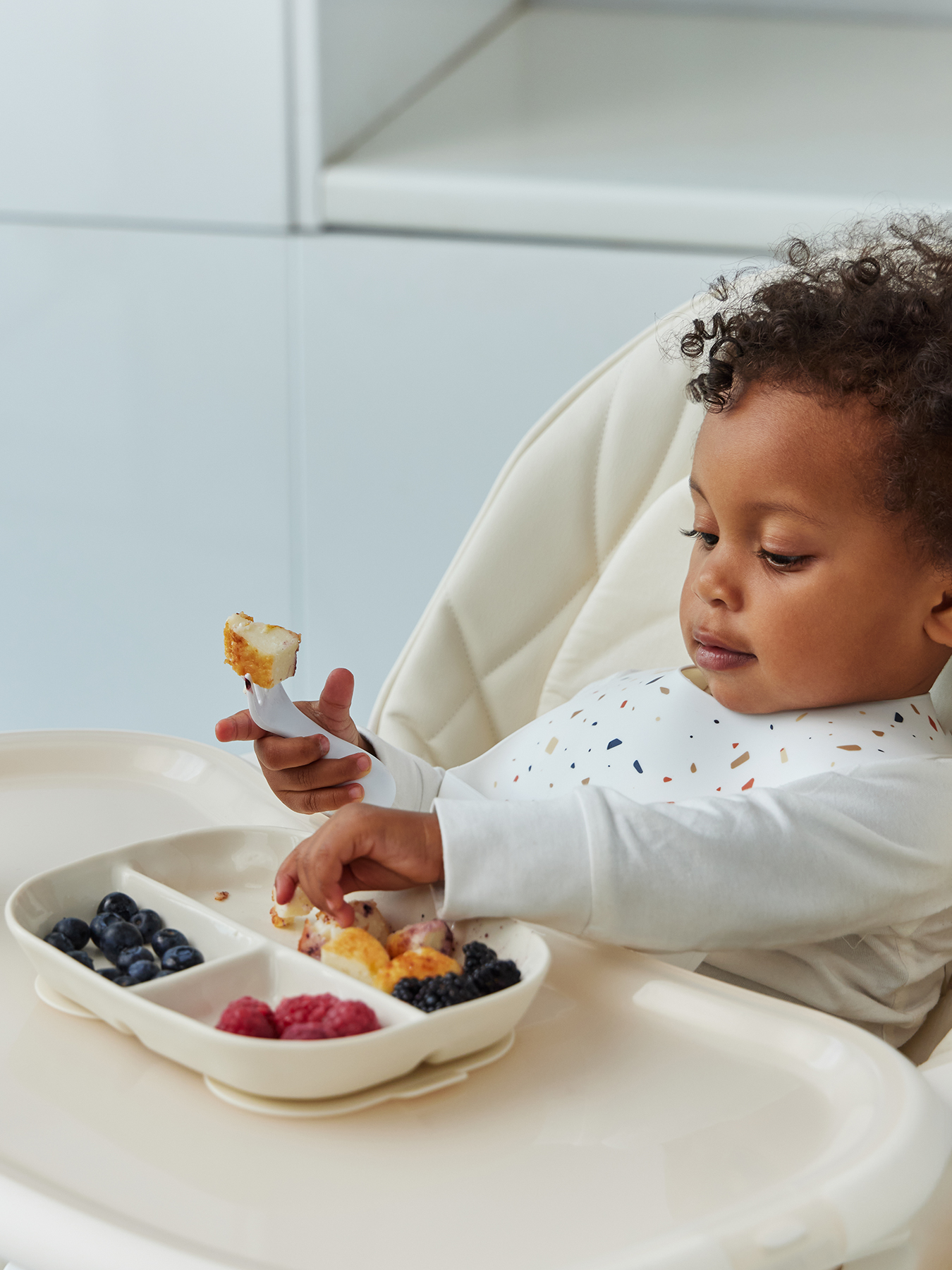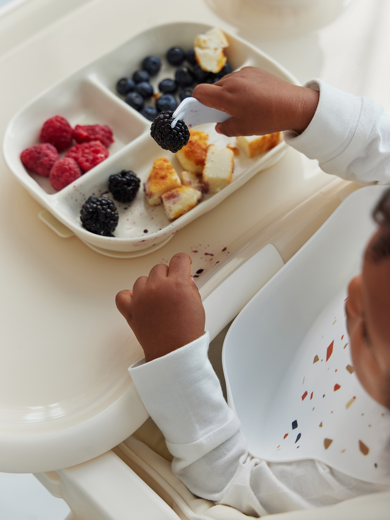Порционная силиконовая тарелка идеально подходит для первых самостоятельных приемов пищи малыша. Разделена на три секции: это позволяет удобно раскладывать разные виды продуктов, избегая их смешивания. Благодаря надежной присоске тарелка прочно фиксируется на поверхности, предотвращая переворачивание и разливы.
