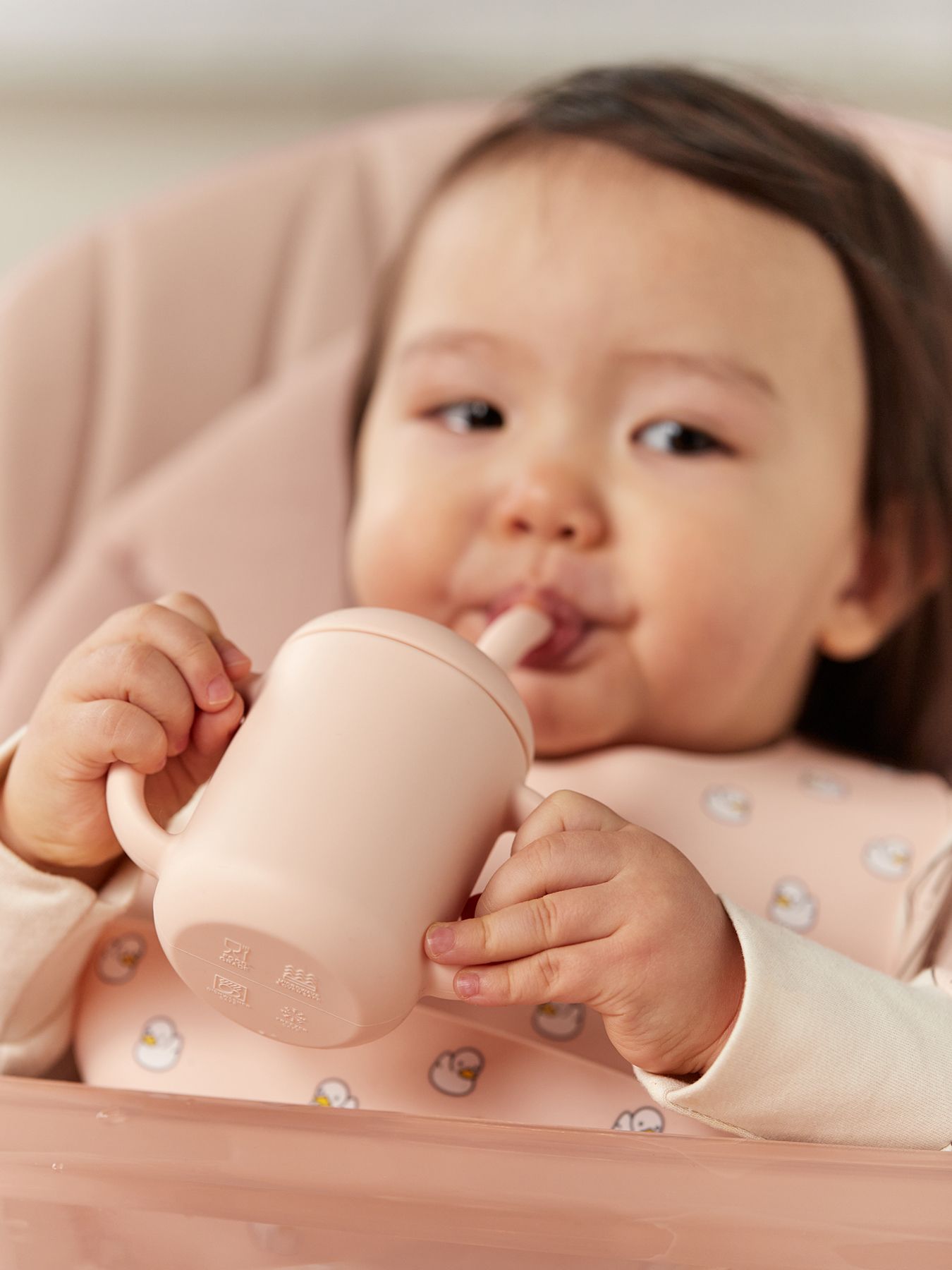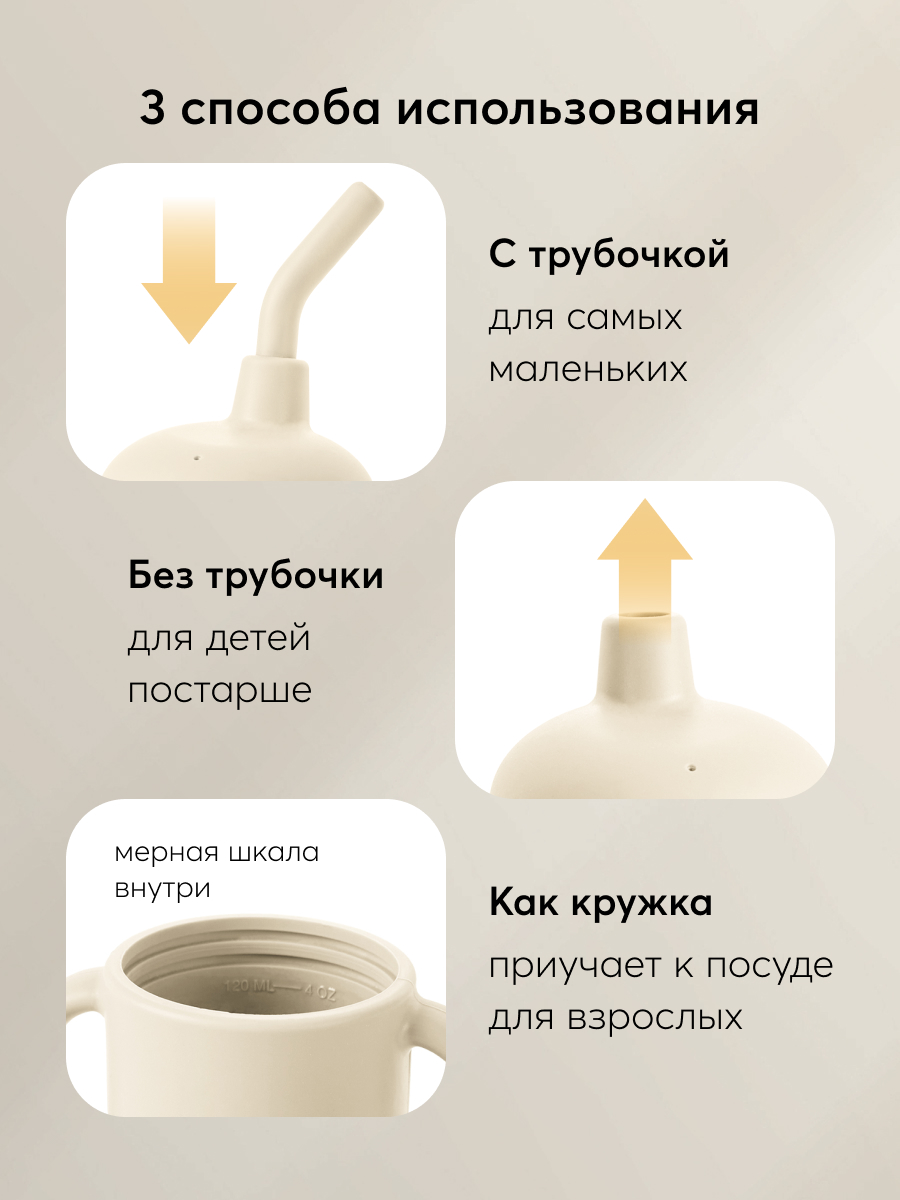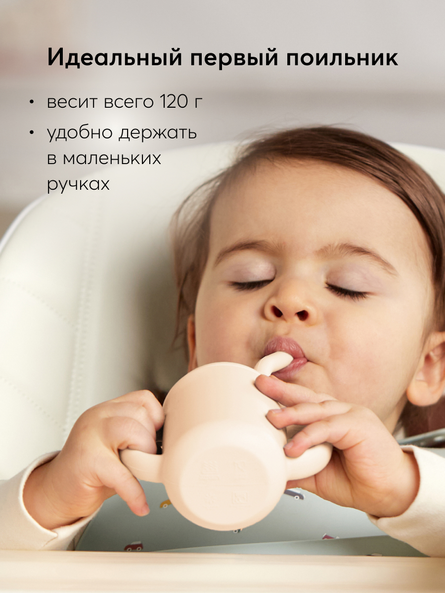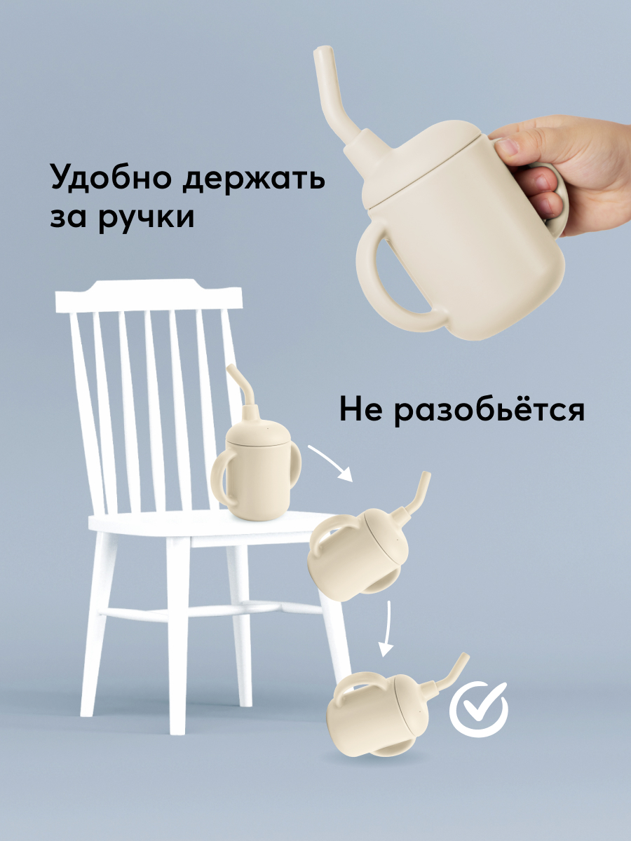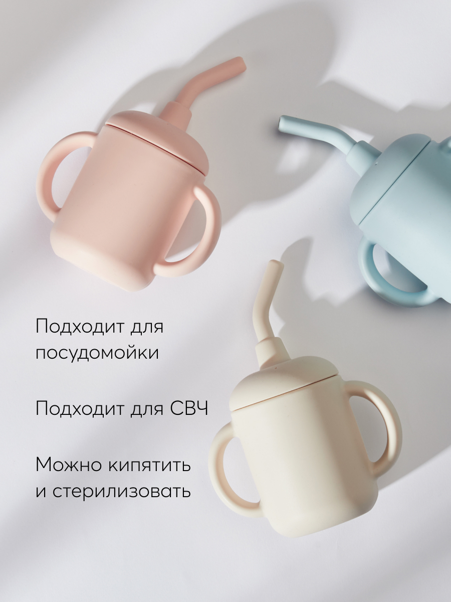Силиконовый поильник-кружка с трубочкой и удобными ручками подойдёт малышам с 6 месяцев. Отличный вариант перехода от соски к кружке. Лёгкий, не бьётся, не впитывает неприятные запахи и приятен на ощупь. Мягкая силиконовая трубочка безопасна для нежных дёсен - даже самые маленькие дети могут безопасно пользоваться поильником. Крышка плотно закрывает содержимое, исключает вытекание жидкости. Кружку можно мыть в посудомоечной машине, разогревать в СВЧ и стерилизовать.