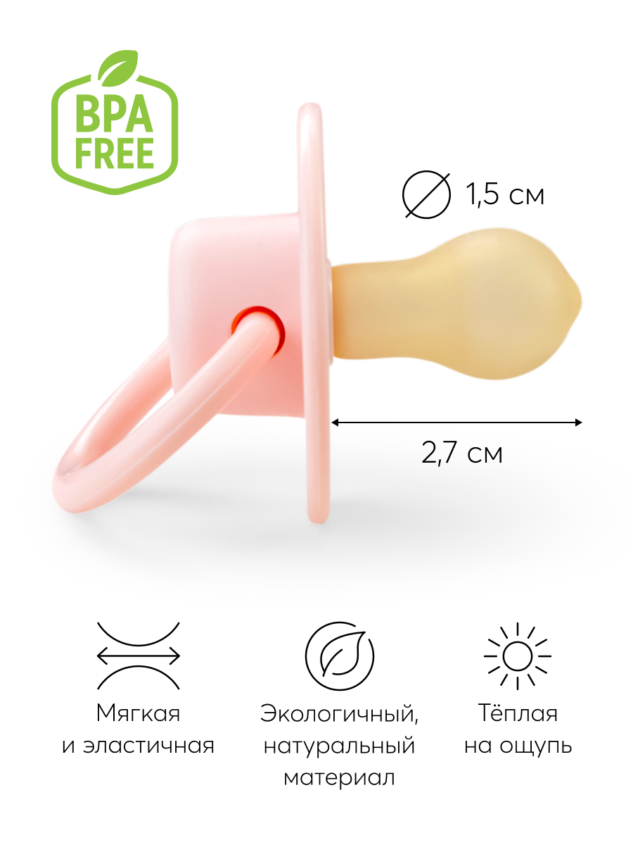 Латексная соска-пустышка изготовлена из природного материала, не вызывающего аллергических реакций и рекомендована для использования от 6 до 12 месяцев. Круглая форма соски успокаивает малыша и прекрасно удовлетворяет сосательный рефлекс, помогая ослабить неприятные ощущения во время прорезывания зубов.