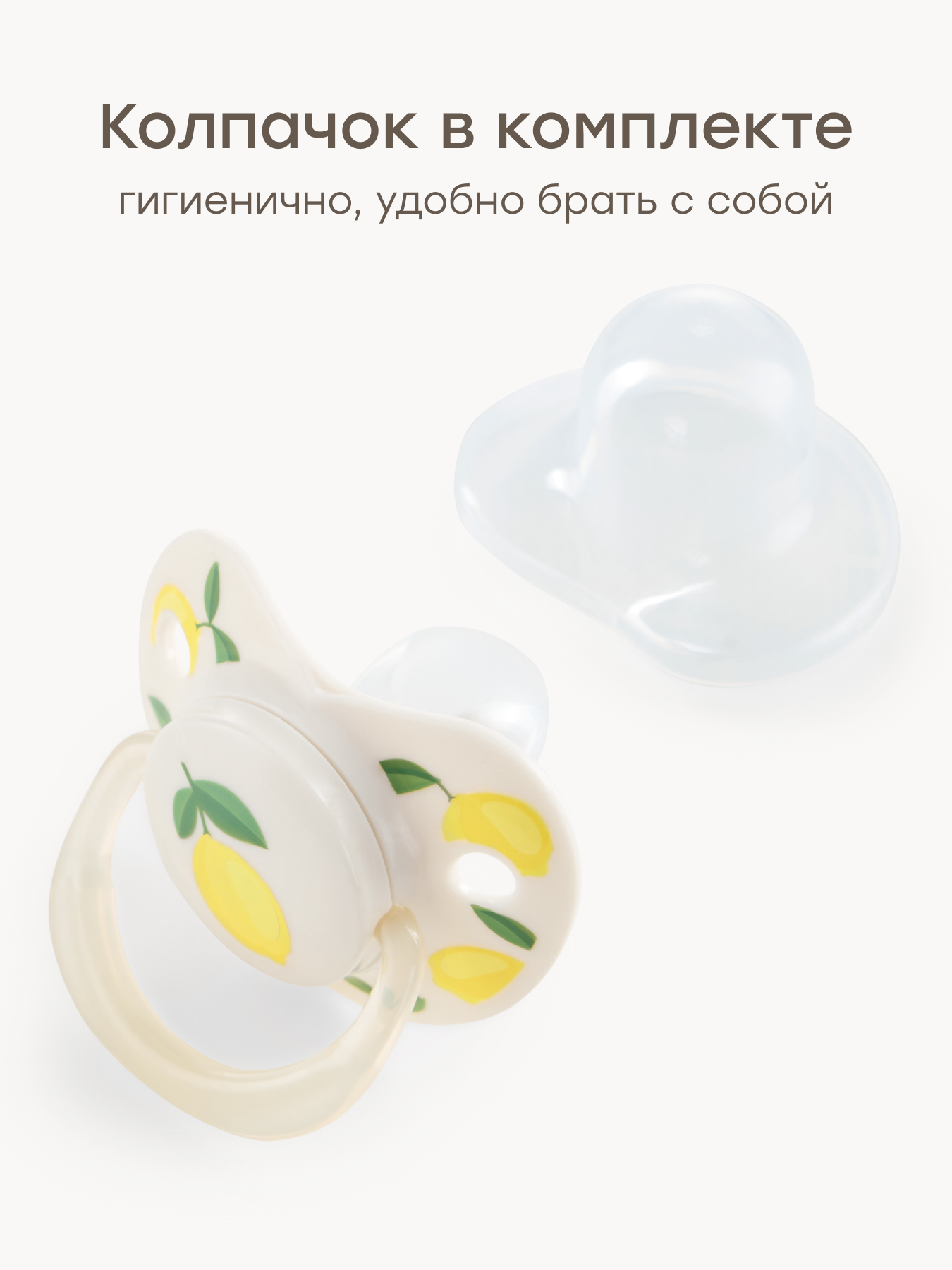 • Защитный колпачок — помогает сохранить пустышку чистой, защищает от загрязнений и упрощает уход вне дома