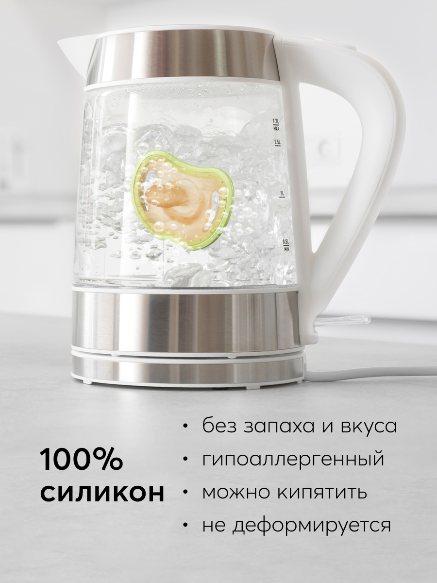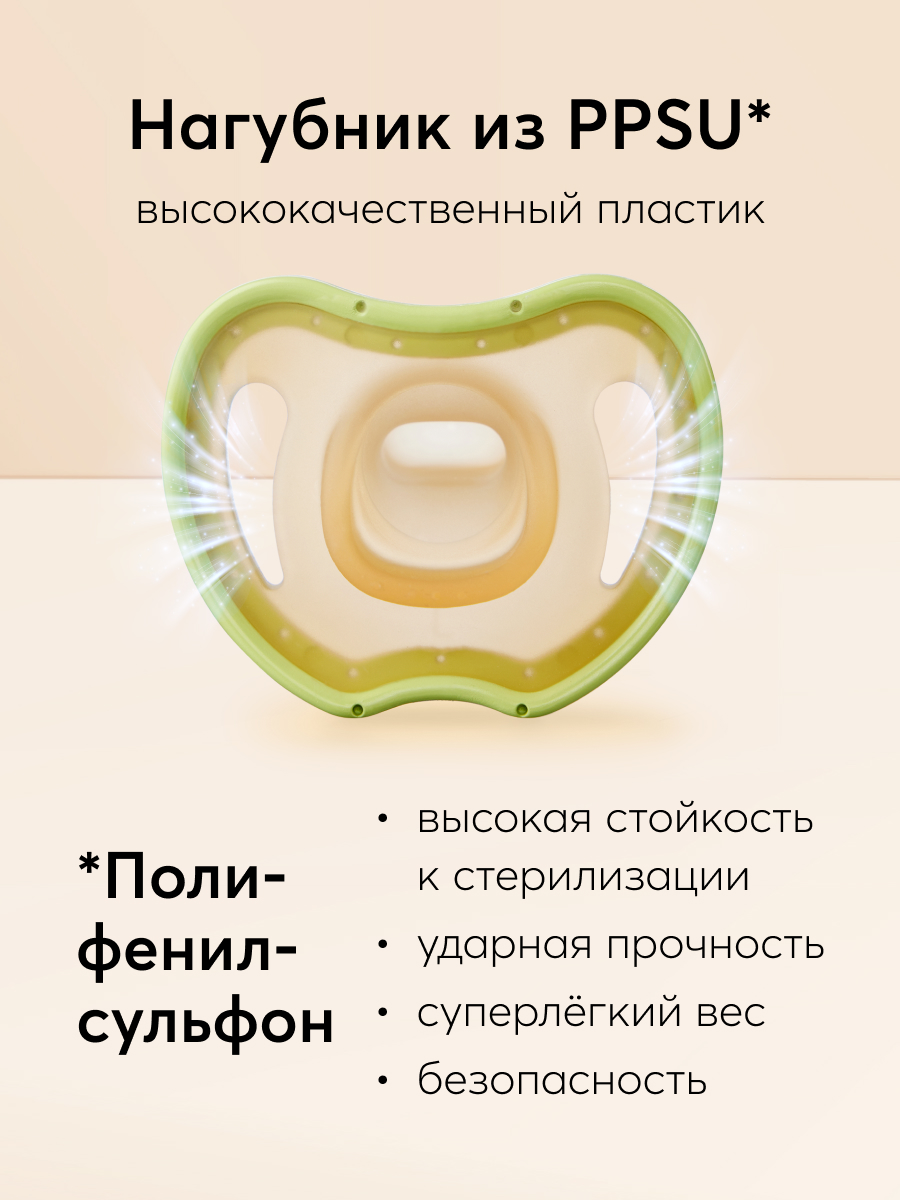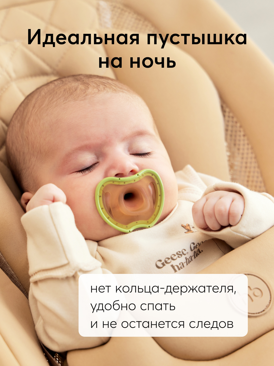 Надёжная и качественная пустышка симметричной формы создавалась с учётом строения ротовой полости малыша. Вентиляционные отверстия в нагубнике позволяют избежать раздражения кожи. Углубление в области носа сделано для удобства, помогает пустышке удерживаться во рту. Силикон, из которого изготовлена соска, не вступает в реакцию со слюной, пластик не содержит Бисфенол А. В комплекте футляр для хранения, чтобы сохранять изделие в чистоте где бы вы ни находились.