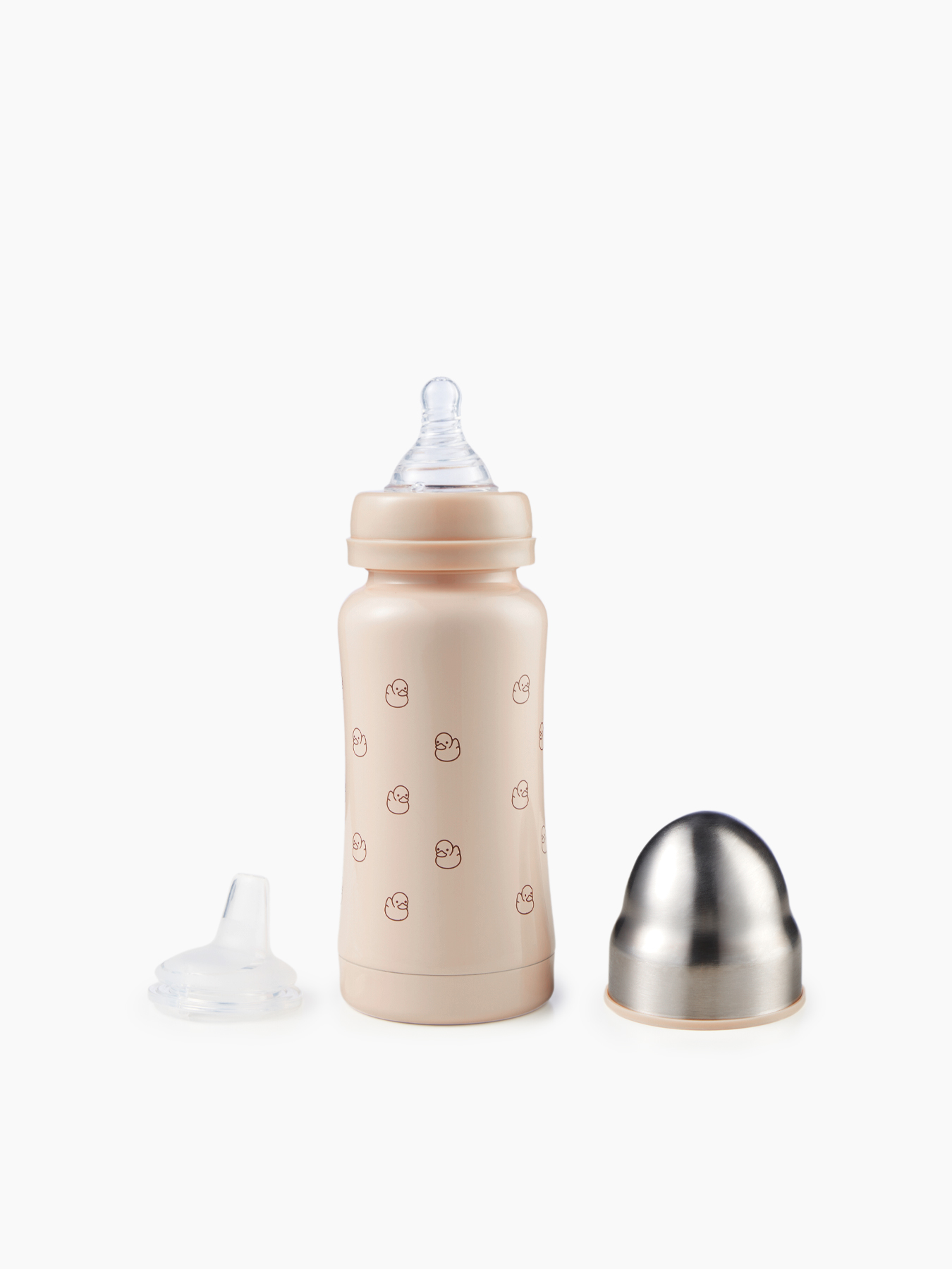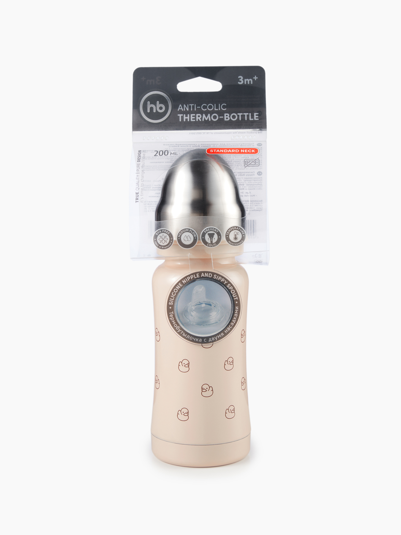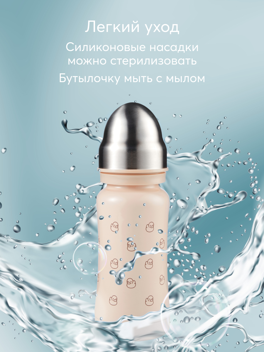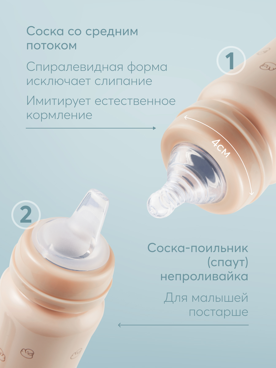 Термобутылочка имеет преимущество перед бутылочками для кормления из пластика – она дольше сохранит температуру жидкости и позволит иметь под рукой горячую воду или теплую смесь во время похода в поликлинику, в магазин или небольшую поездку. Удобно использовать для готового питания или горячей воды – в термос можно заливать жидкость температурой до 100°С. В комплекте 2 насадки: соска для малышей и соска-поильник непроливайка для малышей постарше, а также бутылочка имеет антиколиковую систему. Корпус из нержавеющей 304 стали сужается к середине, бутылочку приятно и удобно держать в руках детям и взрослым. Благодаря покрытию и конструкции бутылочки, корпус не обжигает, даже если внутри кипяток. Плотная крышка закрывает бутылку, исключая вытекание жидкости и попадание грязи на соску.