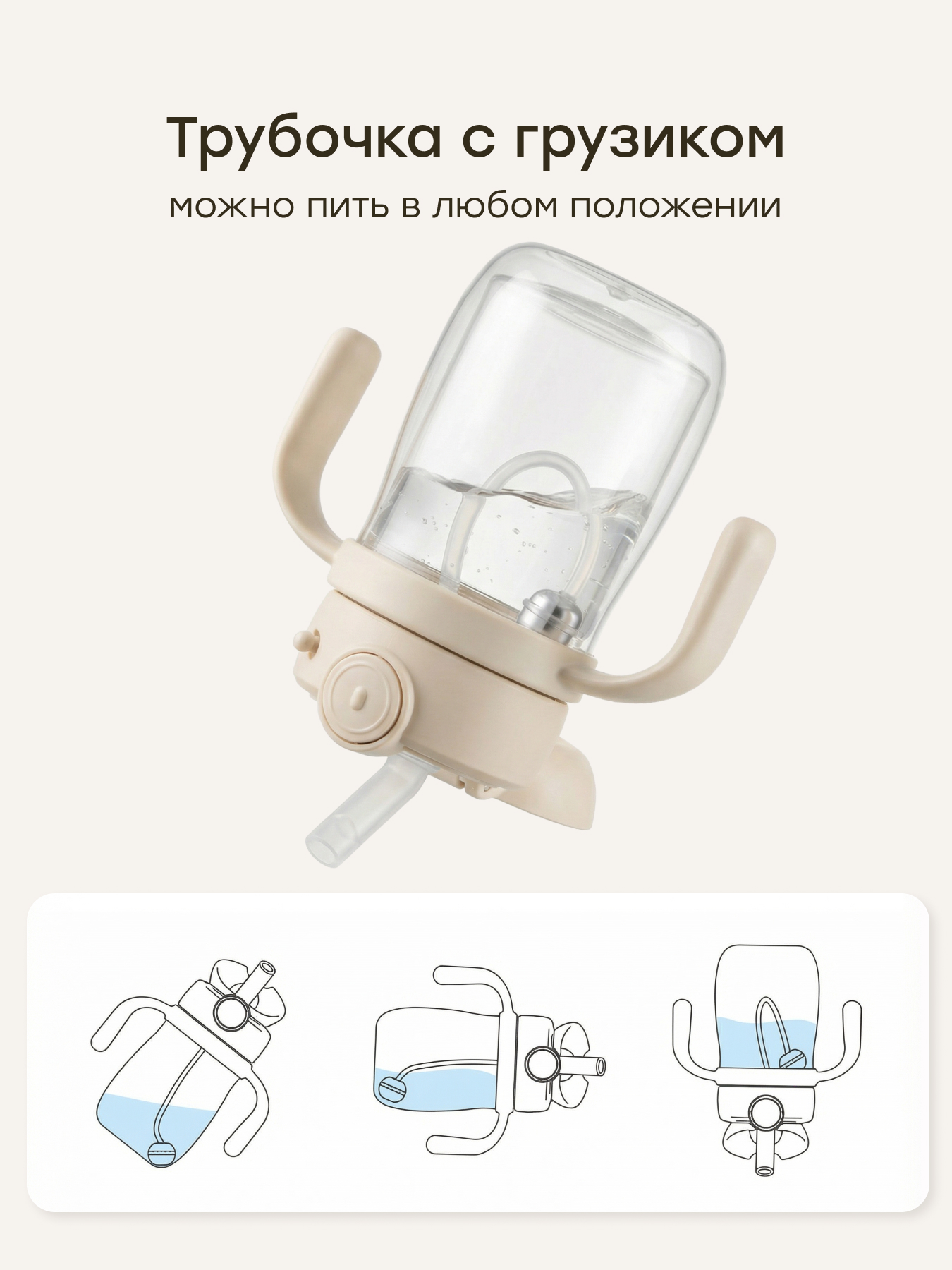 Термопоильник-непроливайка с трубочкой и ручками, 300 мл