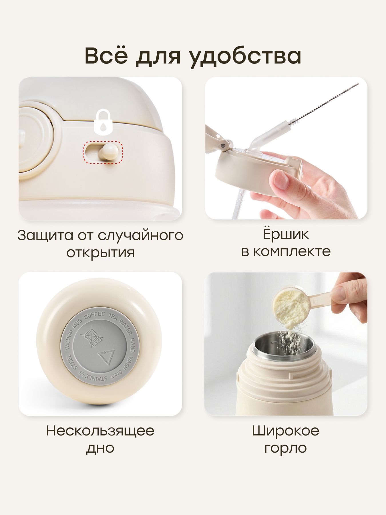 Термопоильник-непроливайка с трубочкой и ручками — идеальная посуда для малышей, которые учатся пить самостоятельно. Детский поильник бутылочка поддерживает температуру напитка, за счет чего такую бутылочку удобно брать с собой на прогулки или поездку. Поильник для новорожденных изготовлен из безопасных материалов, поэтому поильник для малышей безопасен даже при ежедневном использовании. Крышка бутылки-поильника для детей защищает от пыли и загрязнений.