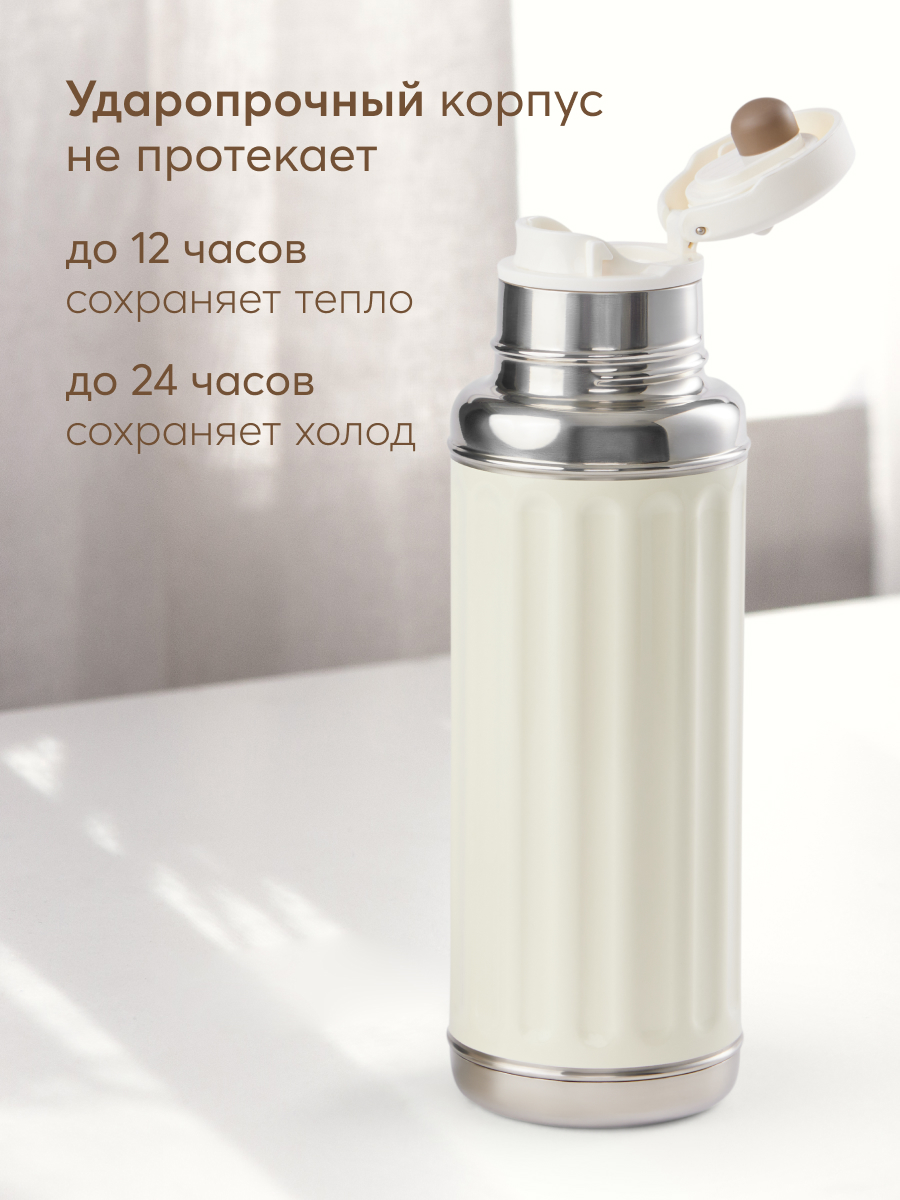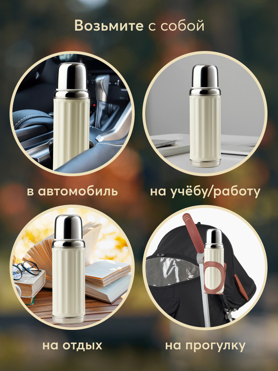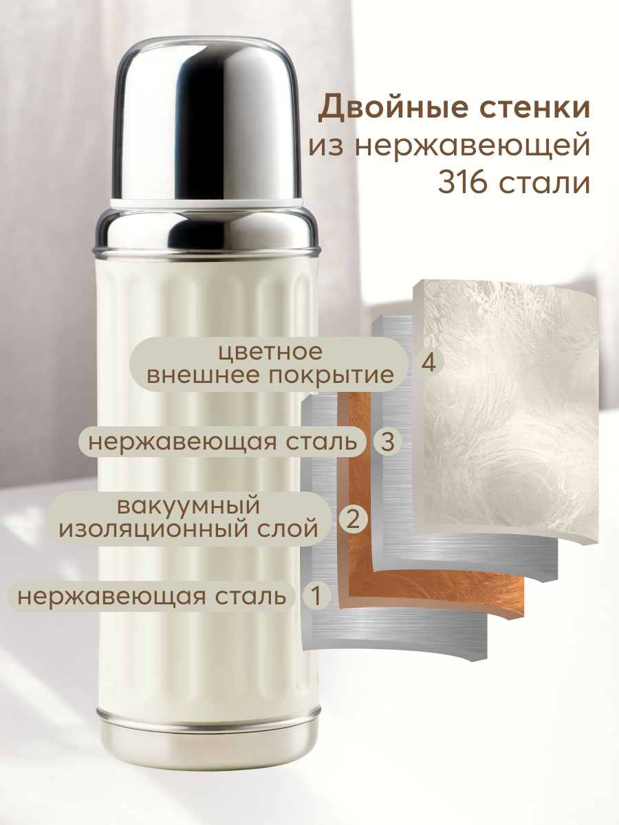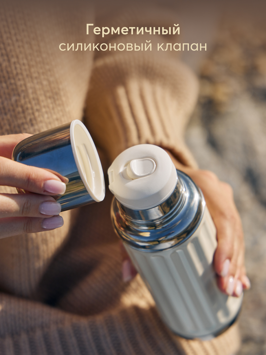Термос станет идеальным компаньоном в любых путешествиях и приключениях. Вместимость 450 мл позволит взять с собой достаточное количество горячего или прохладного освежающего напитка. Изготовлен из нержавеющей стали, а двойные стенки позволяют сохранять температуру напитков в течение длительного времени. Под крышкой на резьбе, которая может быть использована как чашка для комфортного употребления напитков в дороге, идет силиконовый клапан, предотвращающий протекание. Позаботьтесь о комфорте своего отдыха и путешествий вместе с Happy Baby.