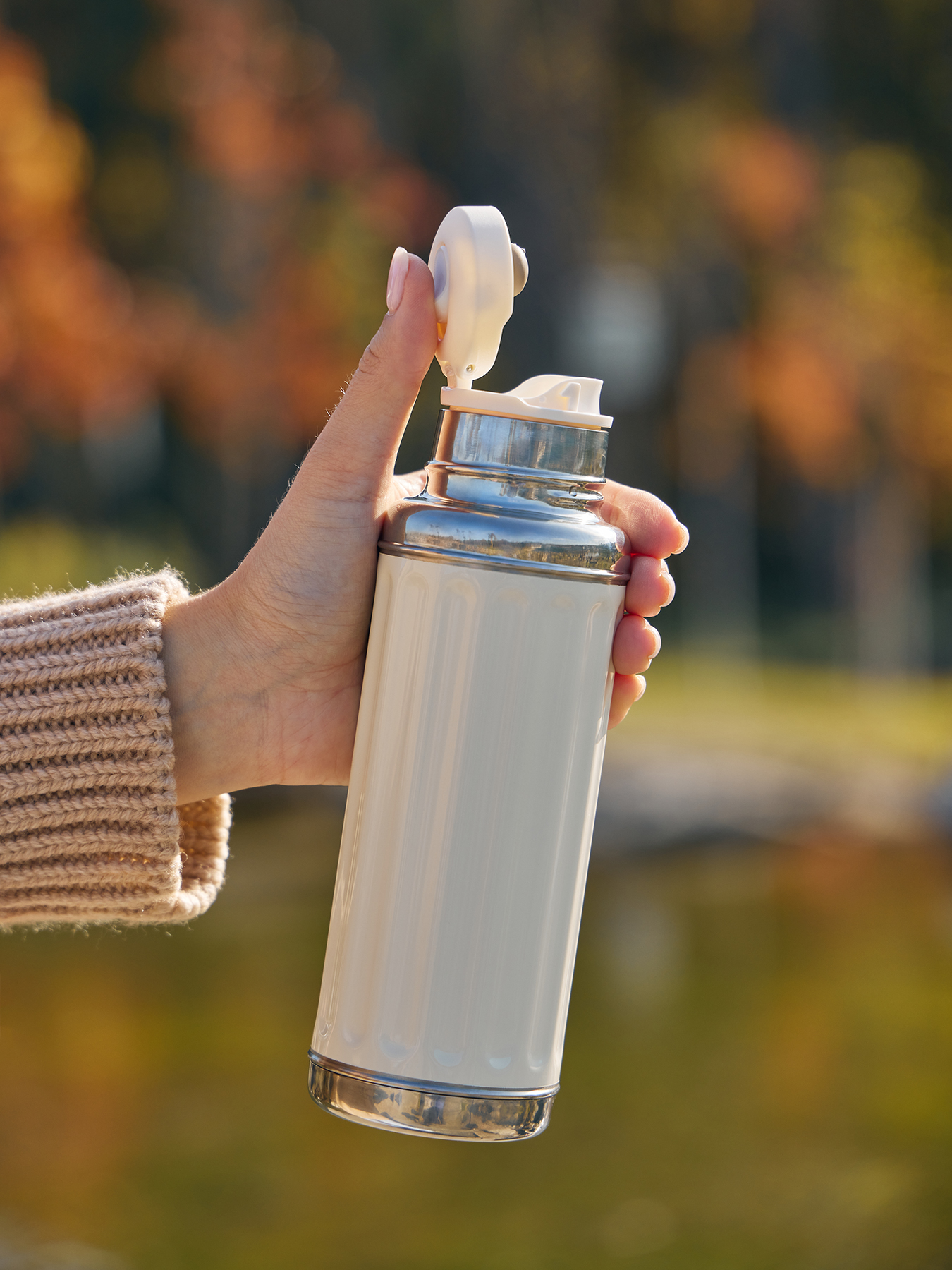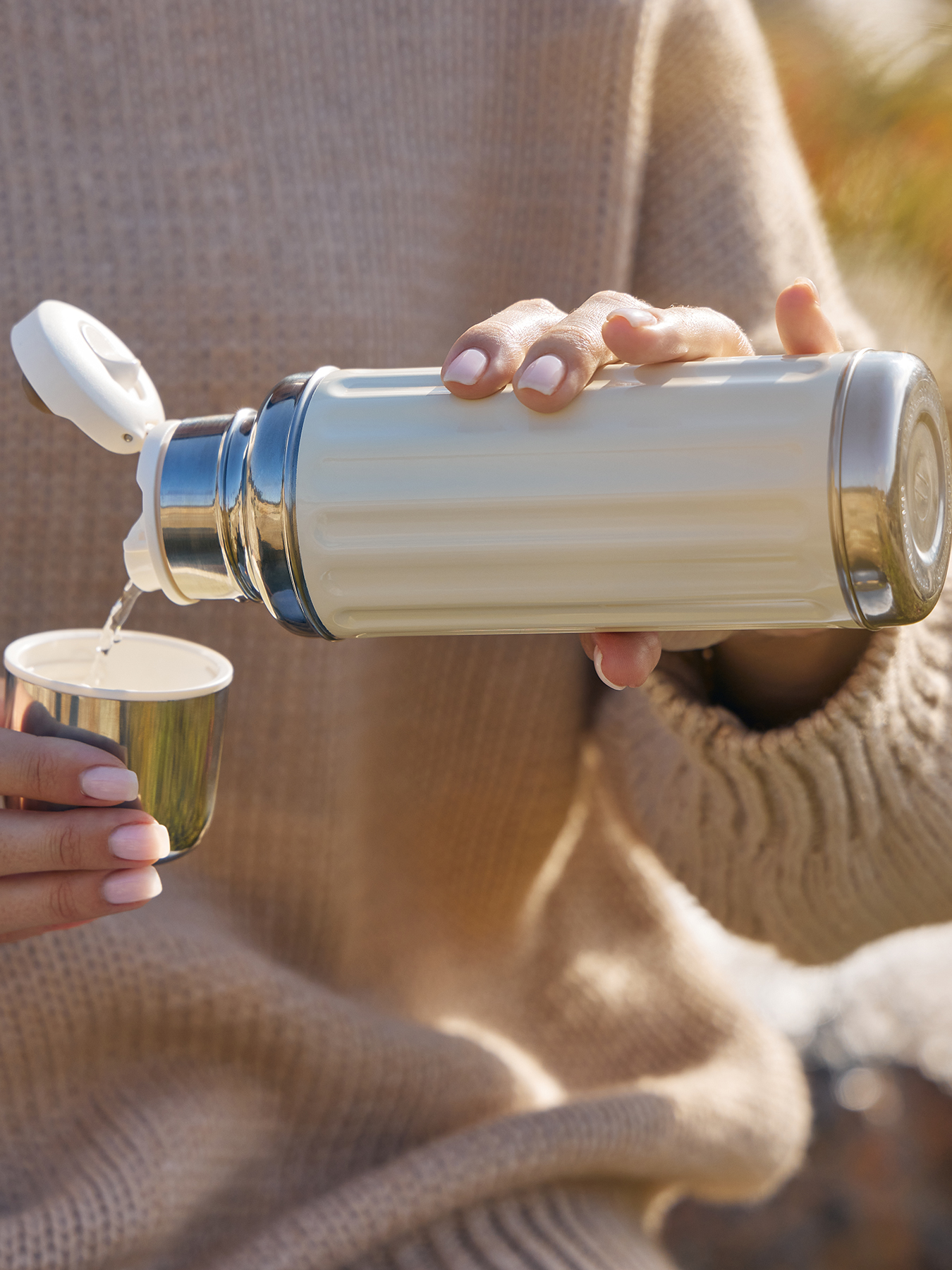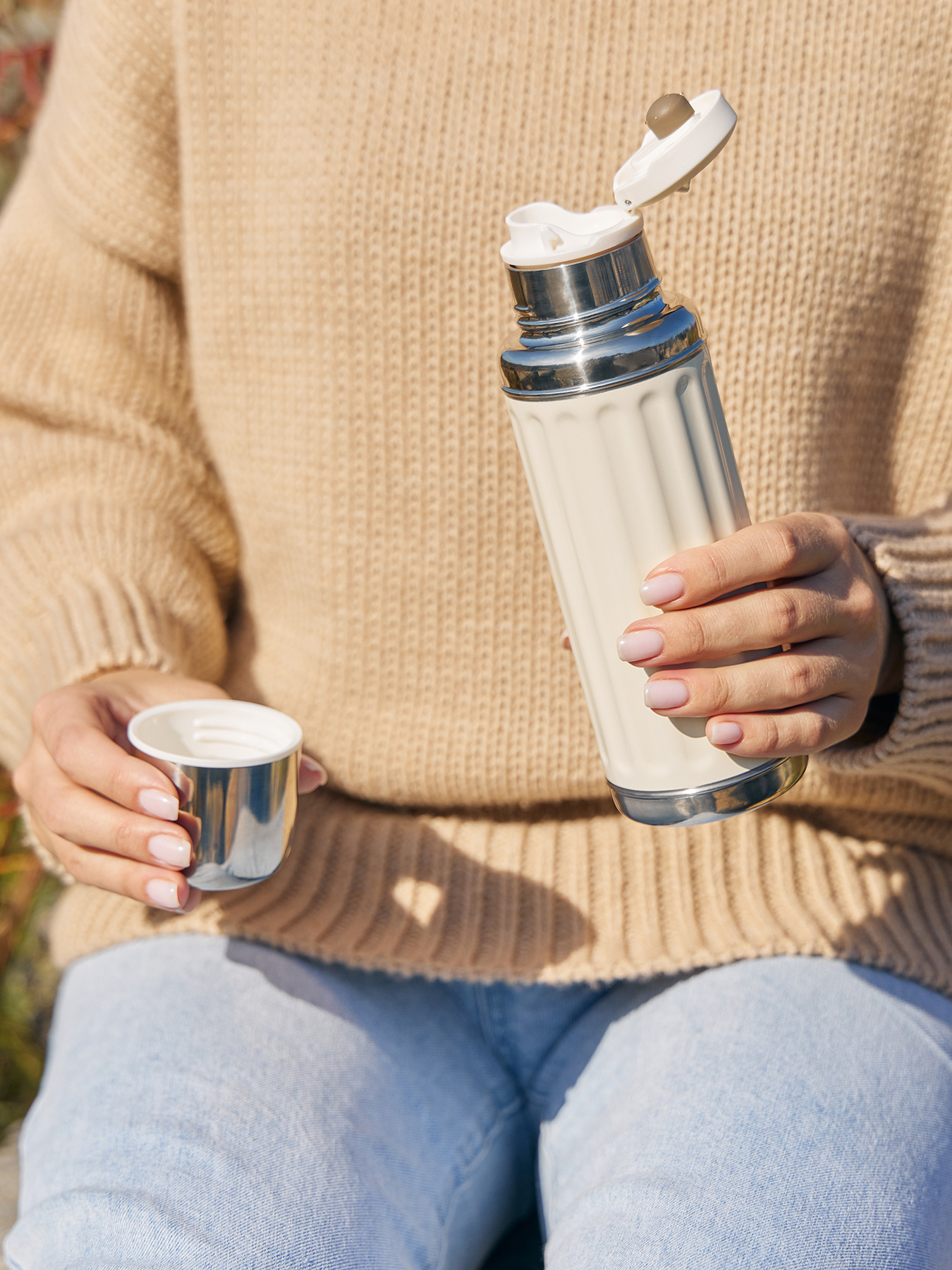 Термос станет идеальным компаньоном в любых путешествиях и приключениях. Вместимость 450 мл позволит взять с собой достаточное количество горячего или прохладного освежающего напитка. Изготовлен из нержавеющей стали, а двойные стенки позволяют сохранять температуру напитков в течение длительного времени. Под крышкой на резьбе, которая может быть использована как чашка для комфортного употребления напитков в дороге, идет силиконовый клапан, предотвращающий протекание. Позаботьтесь о комфорте своего отдыха и путешествий вместе с Happy Baby.